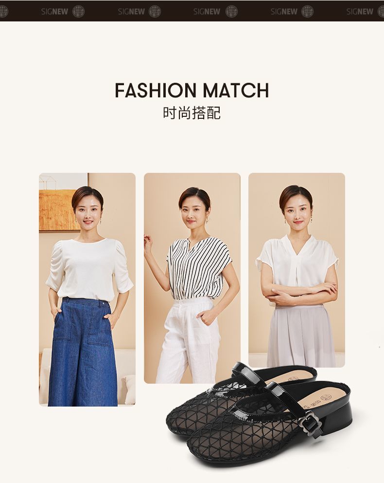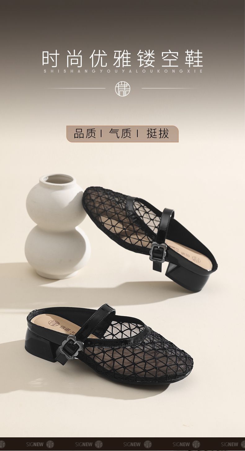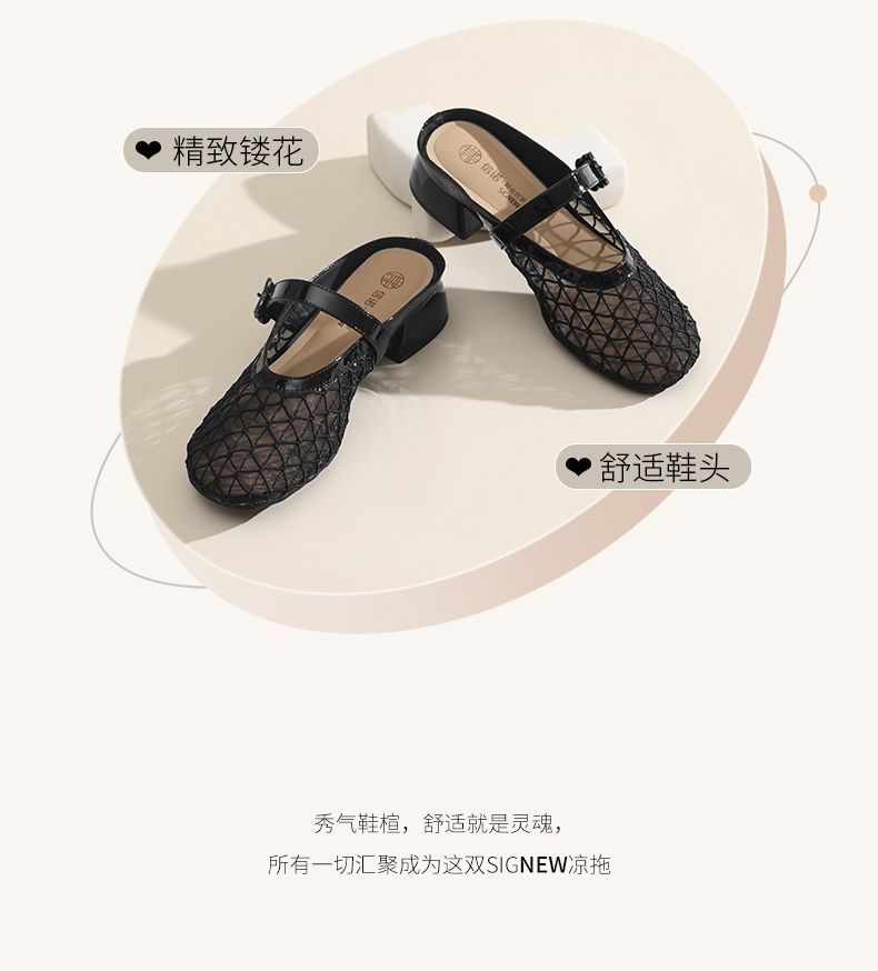 信诺时尚半拖鞋女外穿2025新款夏轻便网纱透气包头穆勒鞋平底凉拖X5C134-51