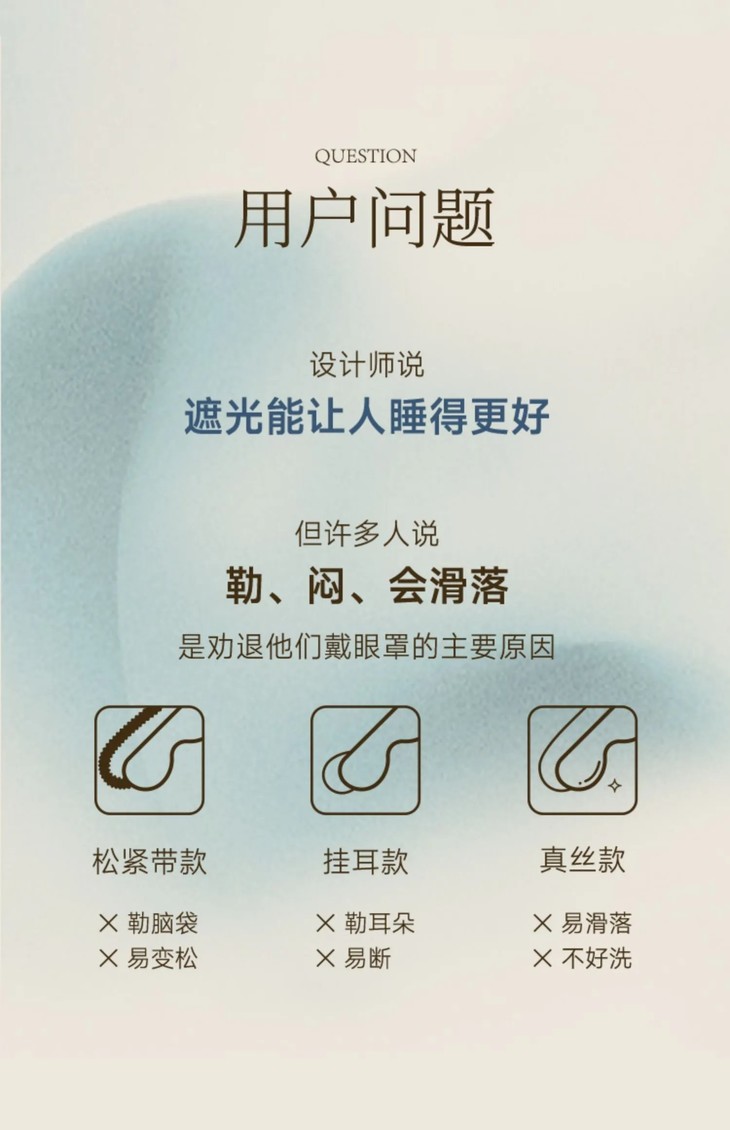 市面上的眼罩常见的款式有挂耳款、松紧带款和真丝款,松紧带款戴久了勒脑袋,并且容易变松…
