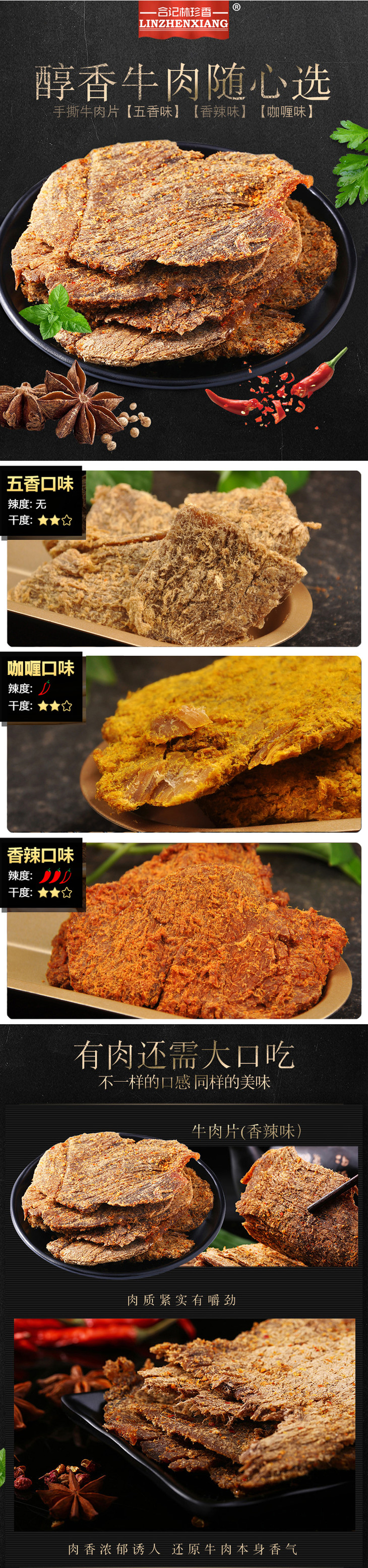 林珍香香辣+五香牛肉片|一盒136G|28