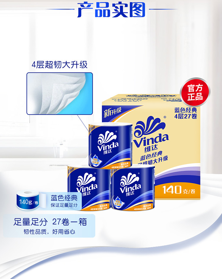 维达蓝色经典卫卷4层140克×27卷 V4069-B