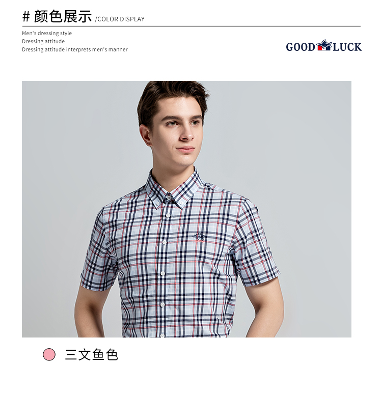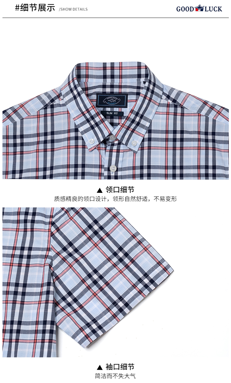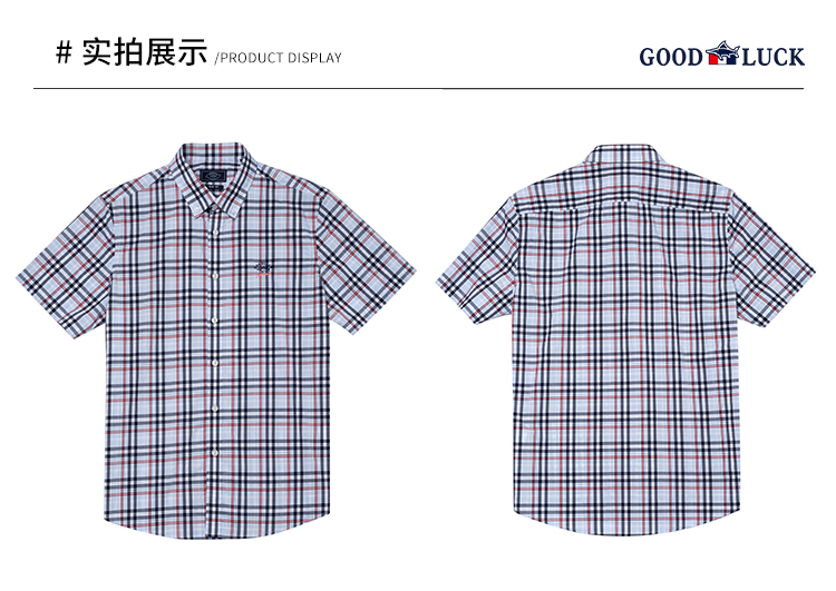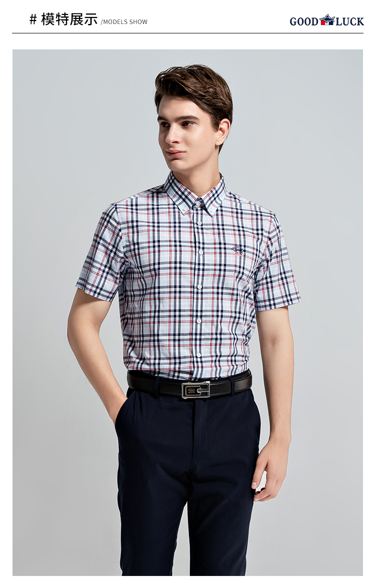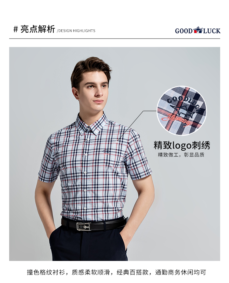 GOOD LUCK/德鲨经典格纹亲肤柔软舒适短袖衬衫LY11416-858