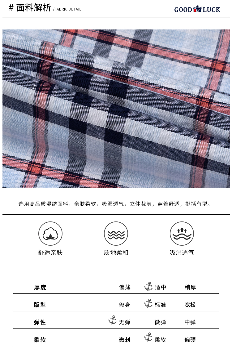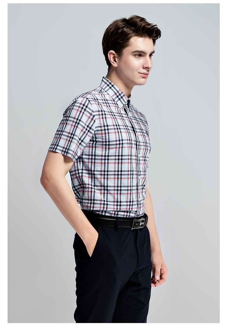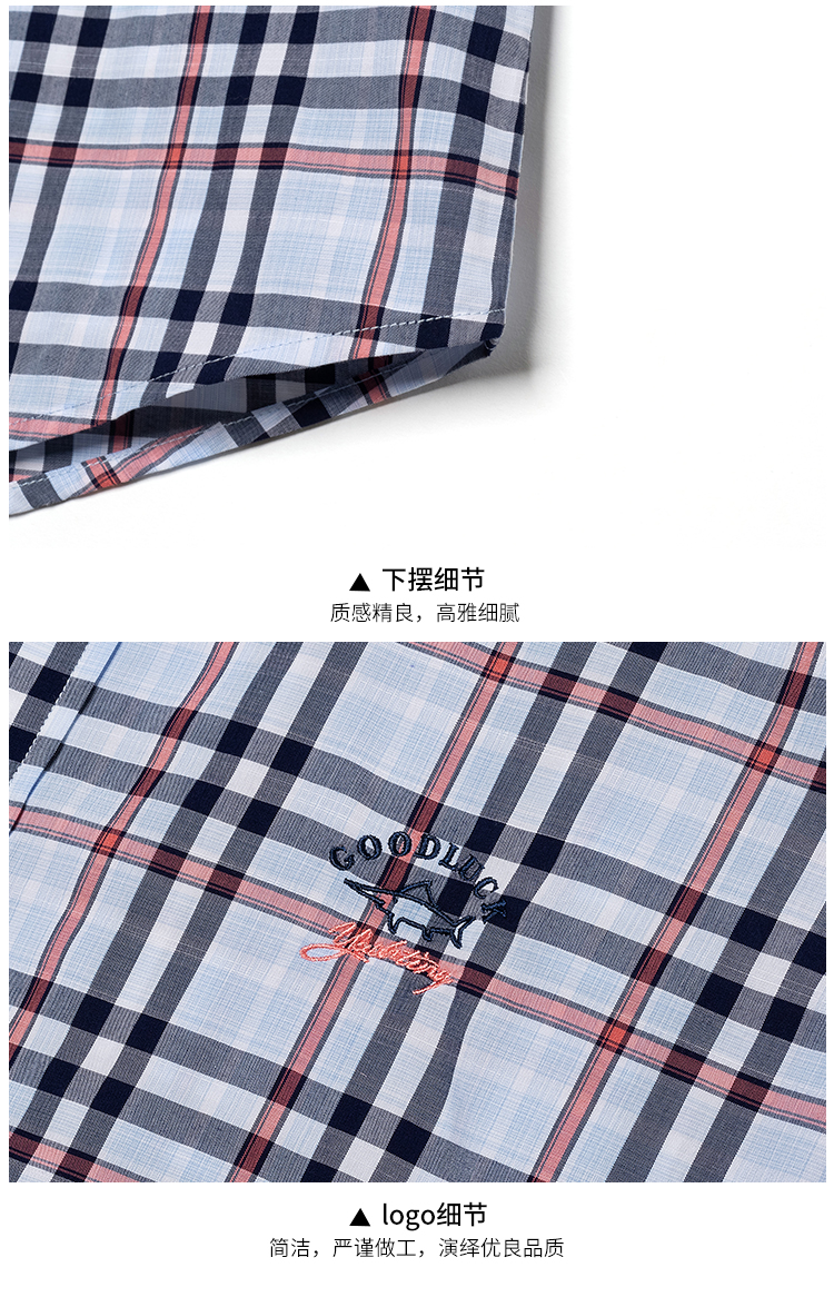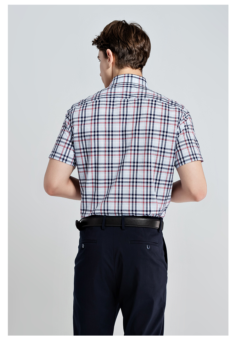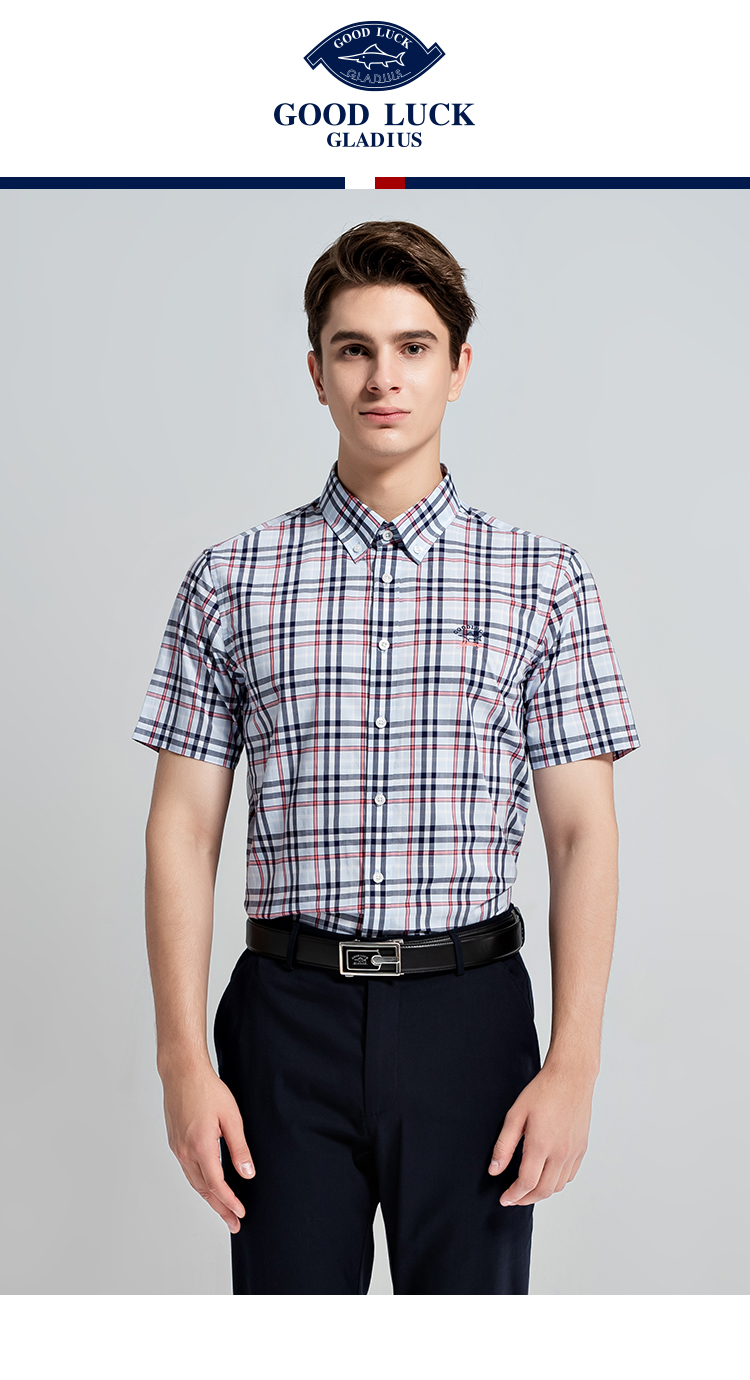 GOOD LUCK/德鲨经典格纹亲肤柔软舒适短袖衬衫LY11416-858