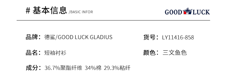 - GOOD LUCK GLADIUS品牌由“浙江德鲨服饰有限公司”引进中国市场,经过多年发展,凭借完善的终端形象,规范化的销售管理,迅速赢得消费者的认可,引领国内消费流行,是成功人士首选男装品牌。