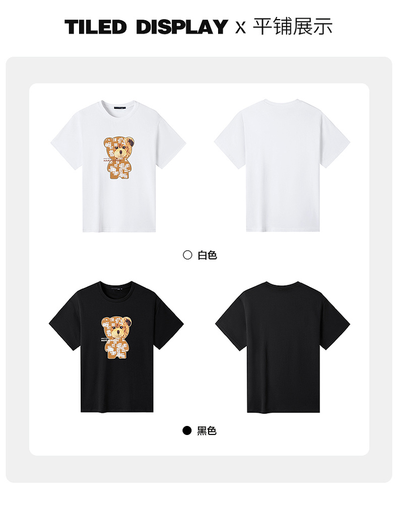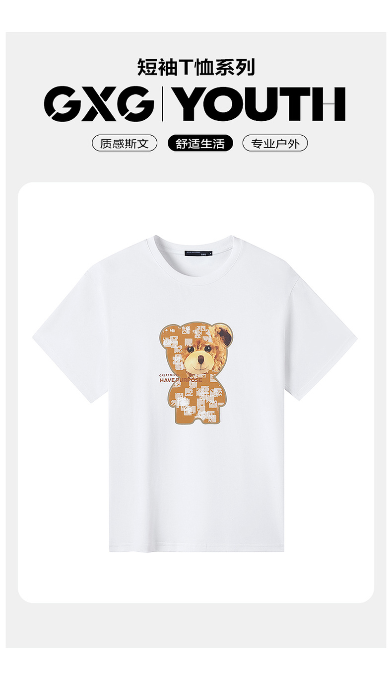 GXG男装【100%棉】夏季卡通萌趣小熊男女情侣款短袖t恤K&C