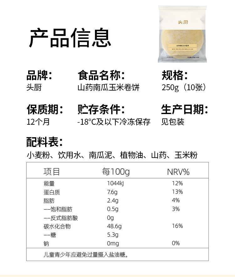 头厨山药南瓜玉米卷饼加热即食半成品儿童早餐放心早饭手手抓饼卷饼