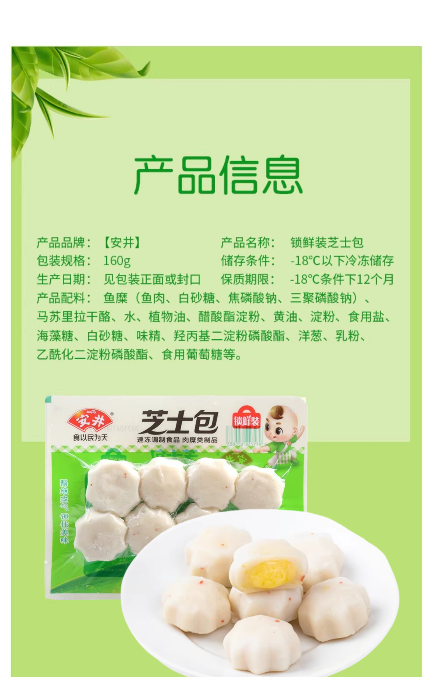 160g 安井 芝士包 锁鲜装 速冻鱼糜制品 火锅丸子麻辣烫关东煮食材
