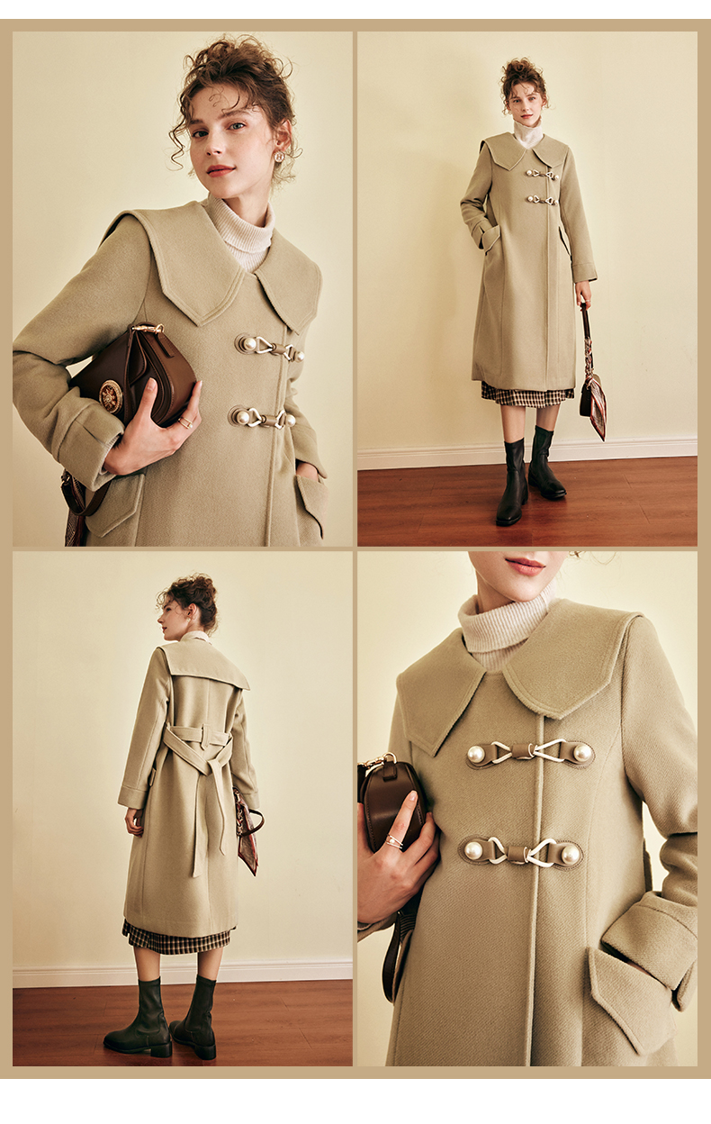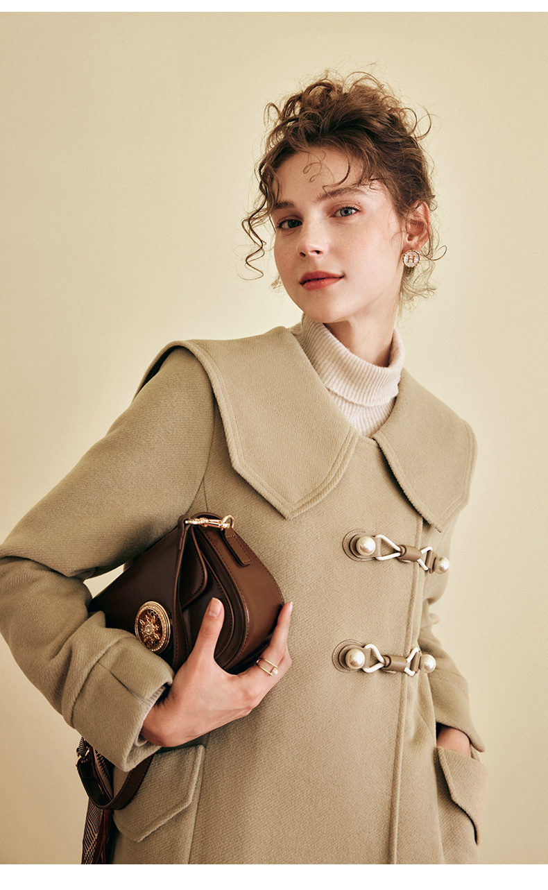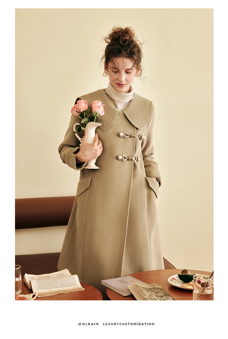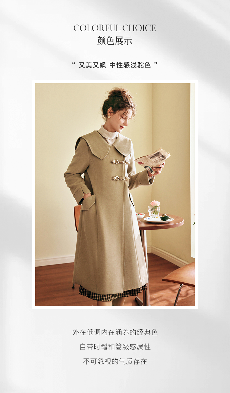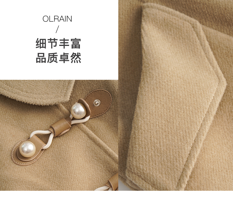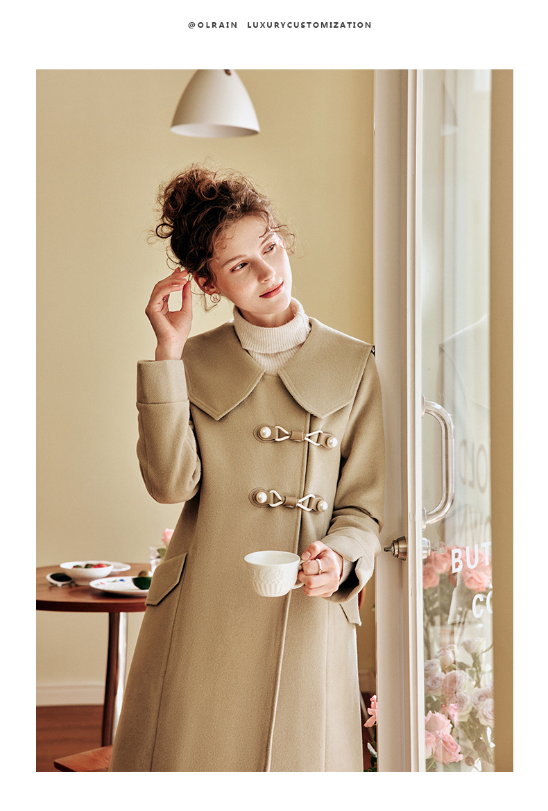 OLrain欧芮儿法式驼色毛呢外套女春2025年新款海军领中长款大衣