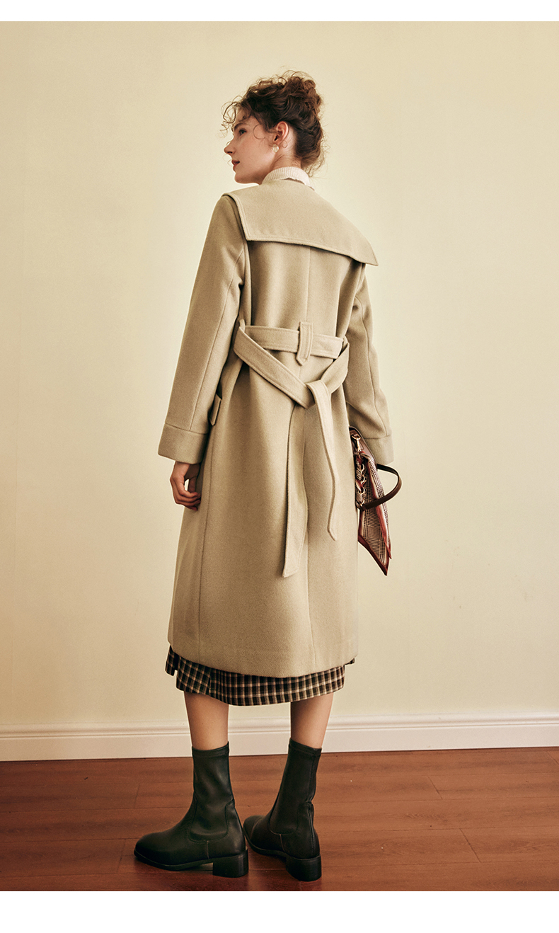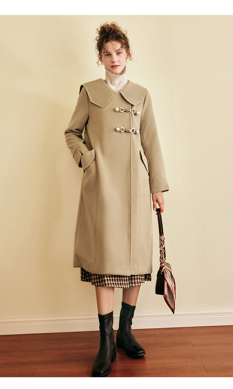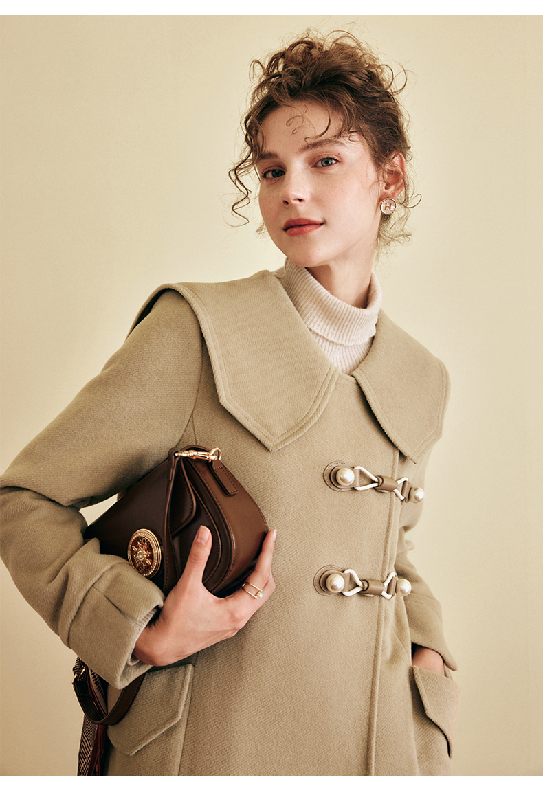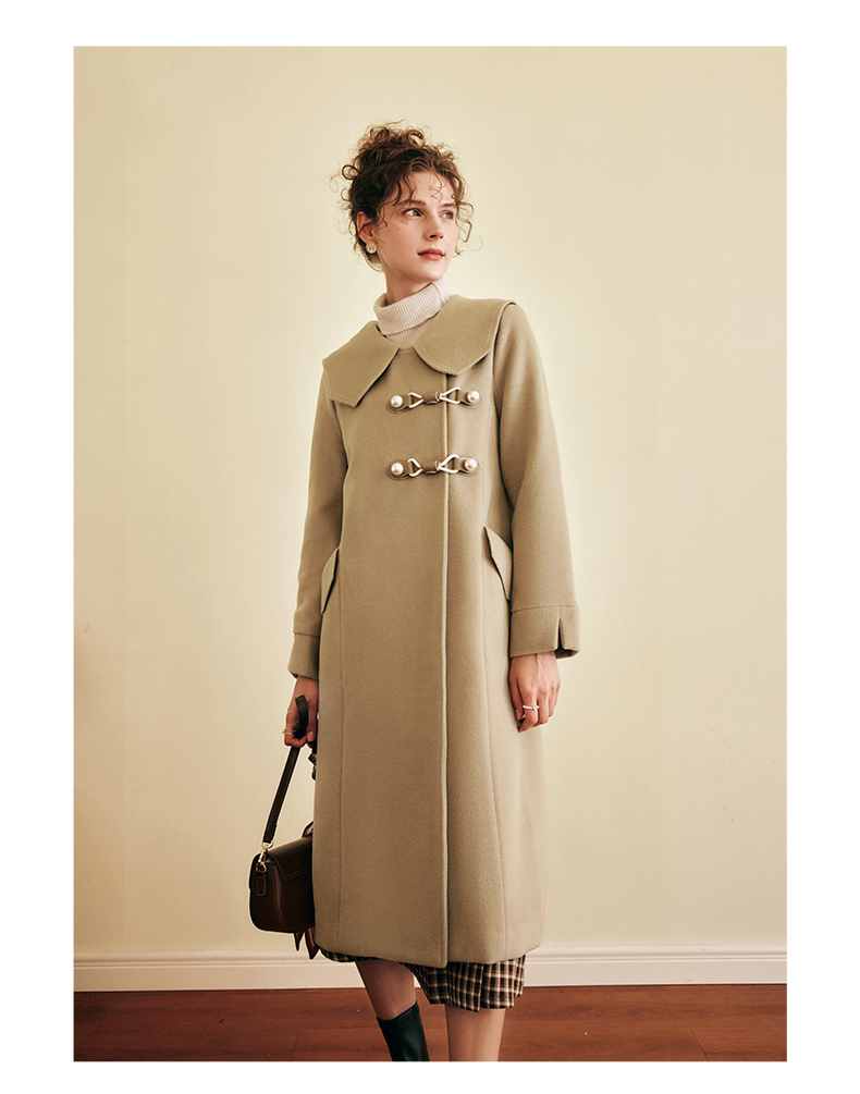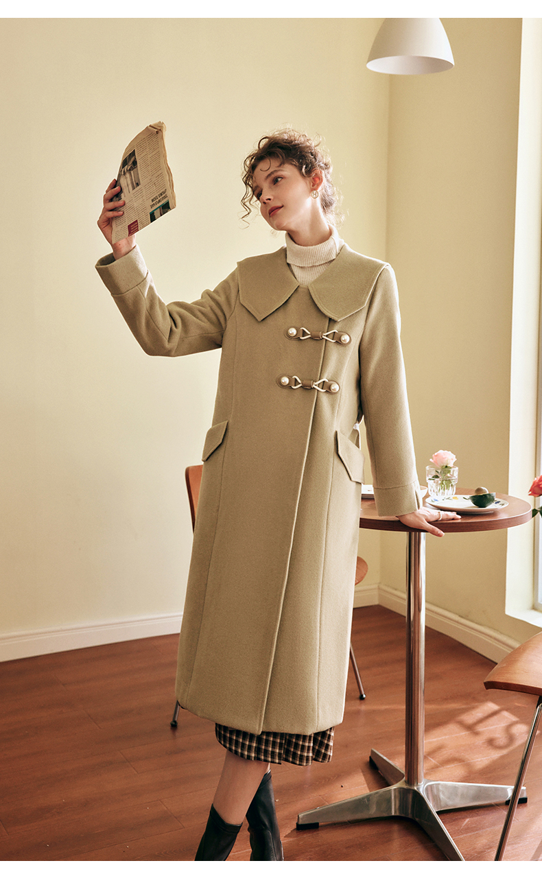 OLrain欧芮儿法式驼色毛呢外套女春2025年新款海军领中长款大衣