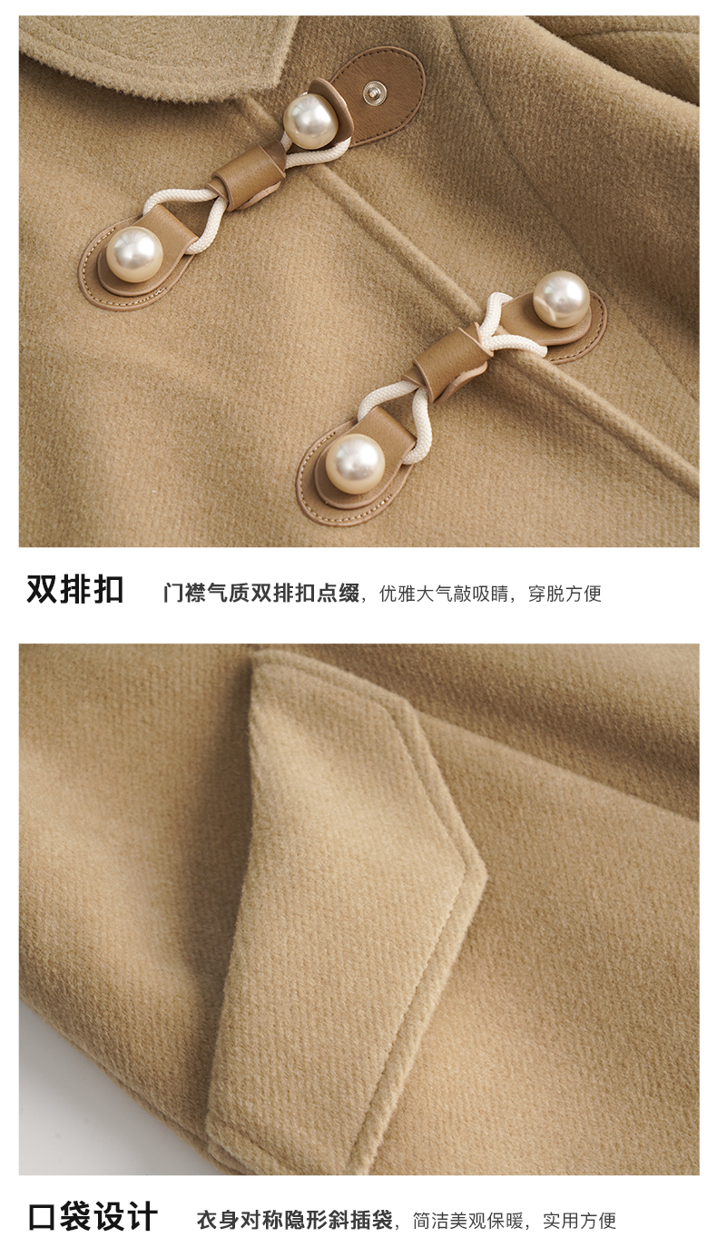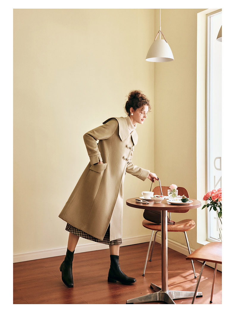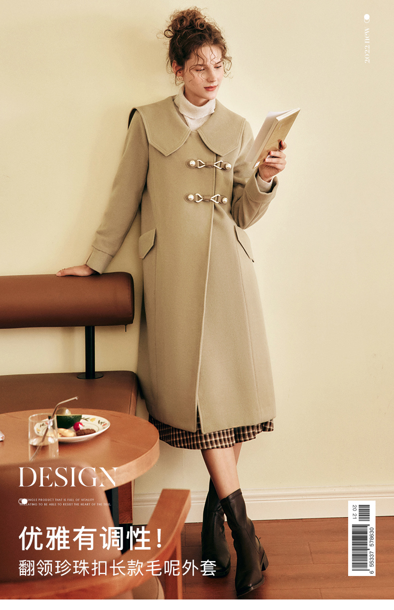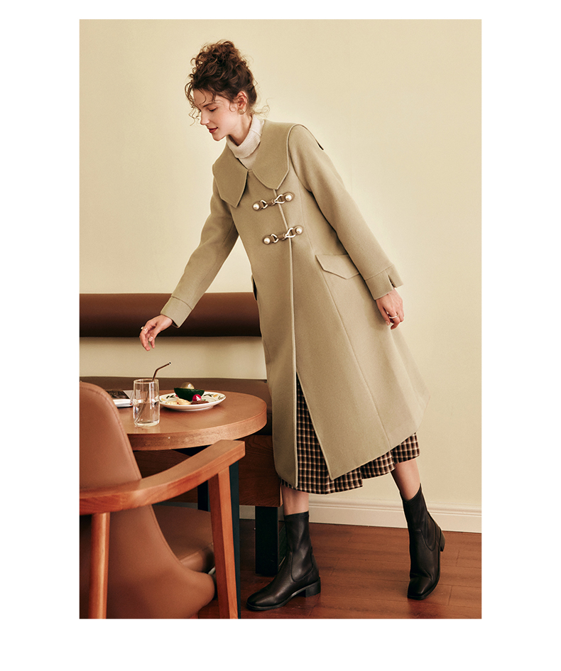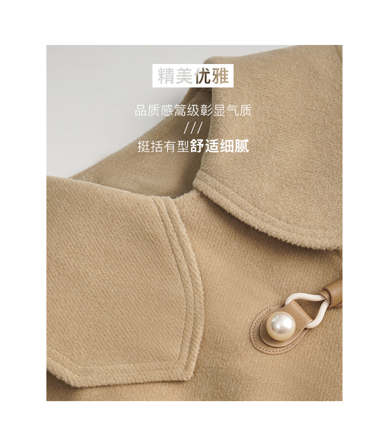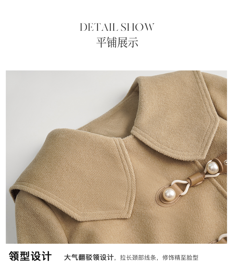 OLrain欧芮儿法式驼色毛呢外套女春2025年新款海军领中长款大衣