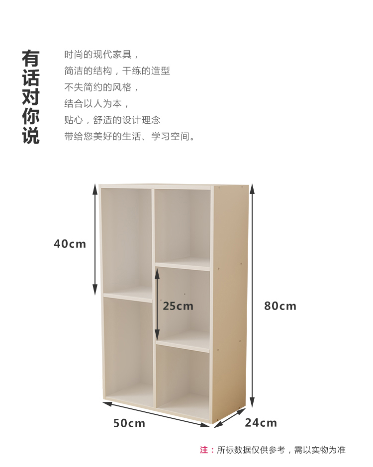 雅美乐书柜书架 简易板式书柜储物收纳柜子 五格暖白色Y3281