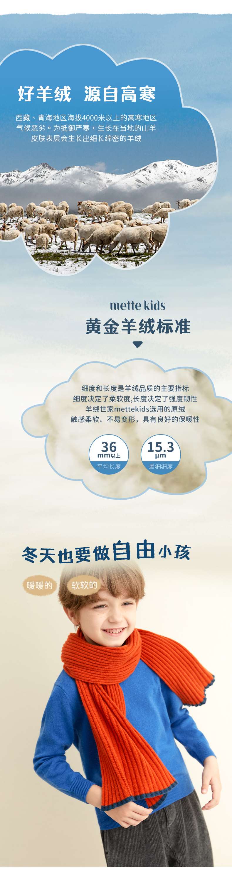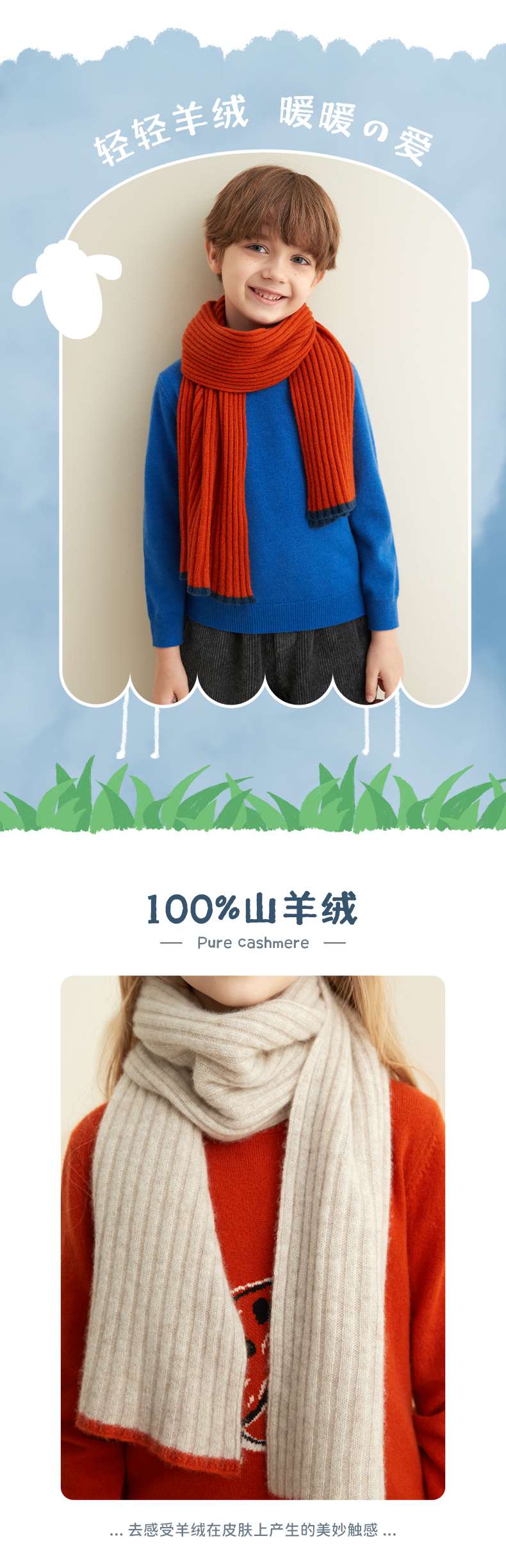 【四色童装羊绒围巾】羊绒世家儿童围巾男女宝薄款秋冬季保暖百搭围脖