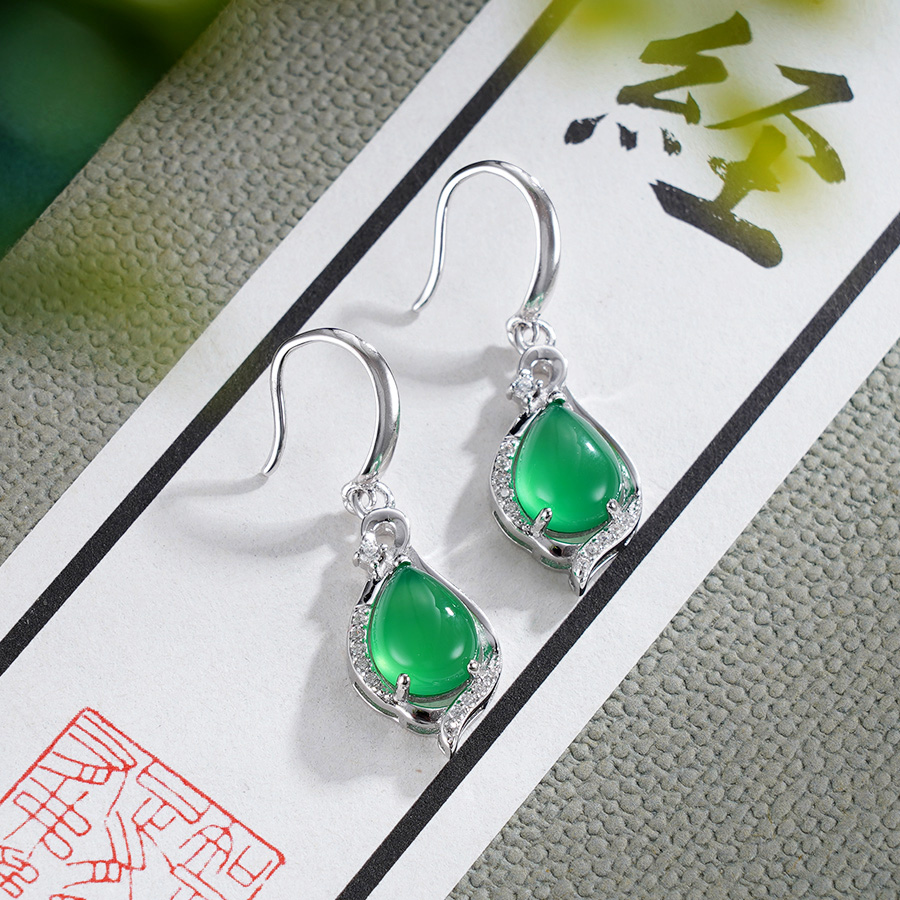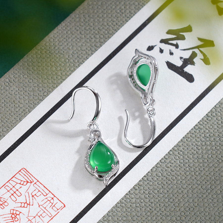 子佩集S925银【清风献瑞】耳环【ES011838】纯银绿玉髓水滴2507