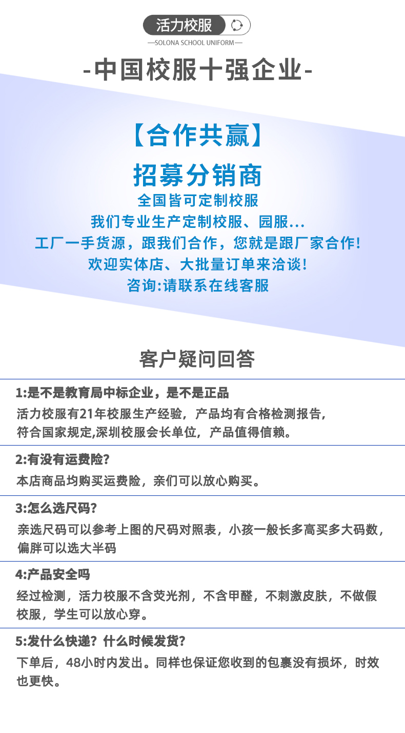 活力校服由深圳市中南活力实业股份有限公司创建的品牌,深圳二十一年老品牌,教育局中标企业;主营深圳校服、广州校服、东莞校服、佛山校服、肇庆校服、江苏校服、鞋袜、学生床上用品等学生课桌椅一站式教育领域产品