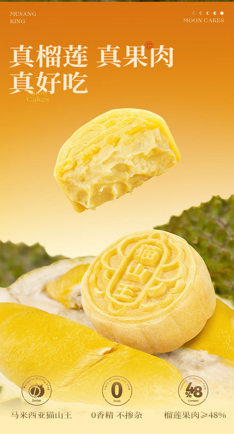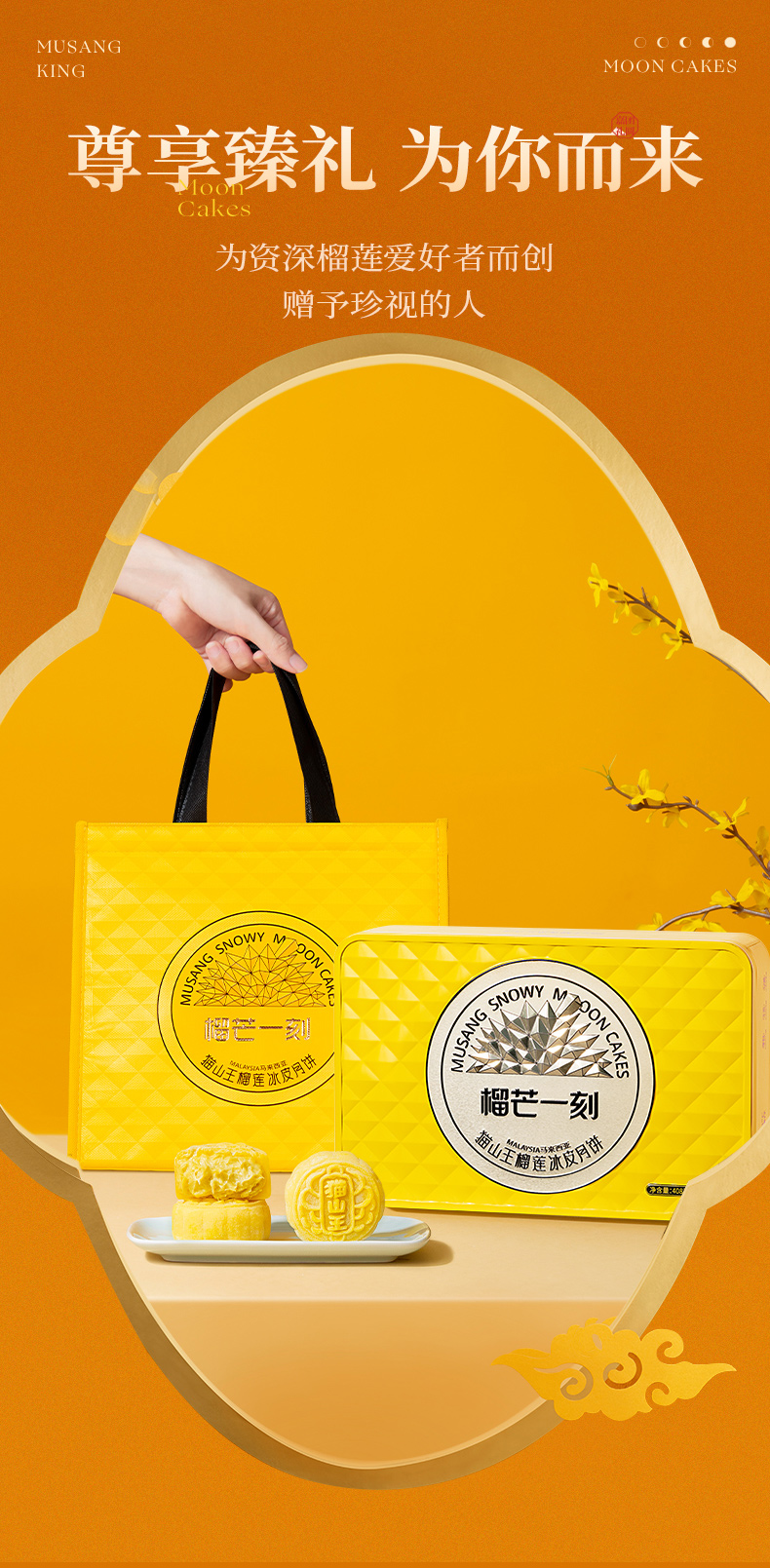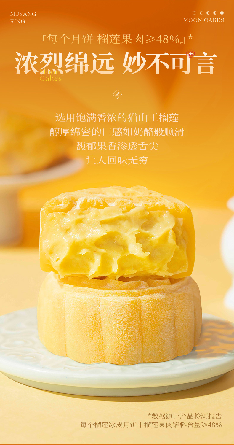 【雅韵中秋】榴芒一刻猫山王榴莲冰皮月饼(68g*6枚装)408g