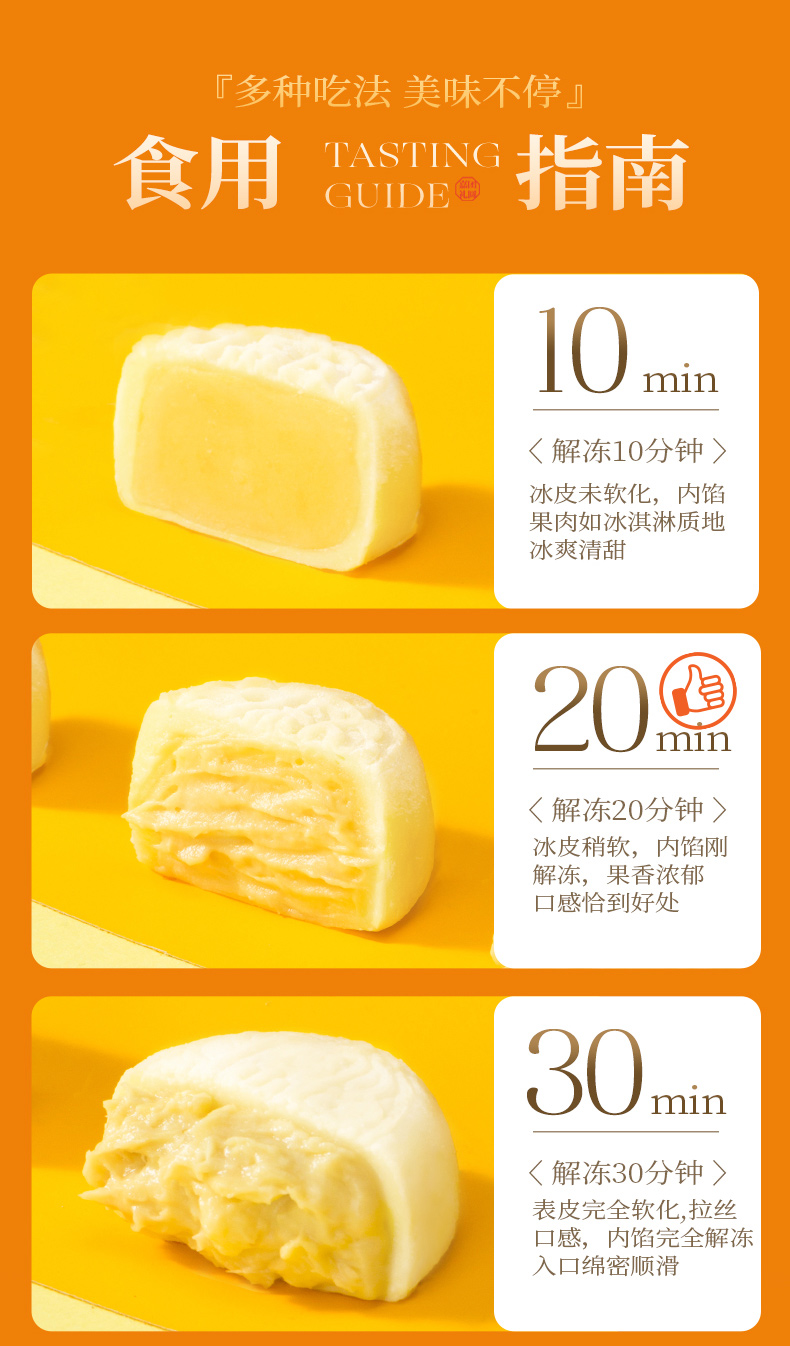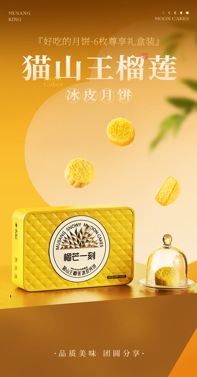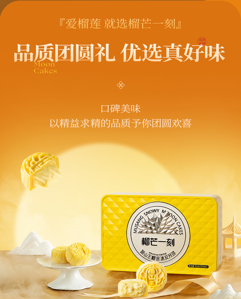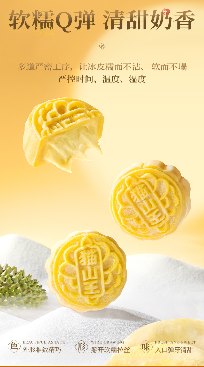 【雅韵中秋】榴芒一刻猫山王榴莲冰皮月饼(68g*6枚装)408g