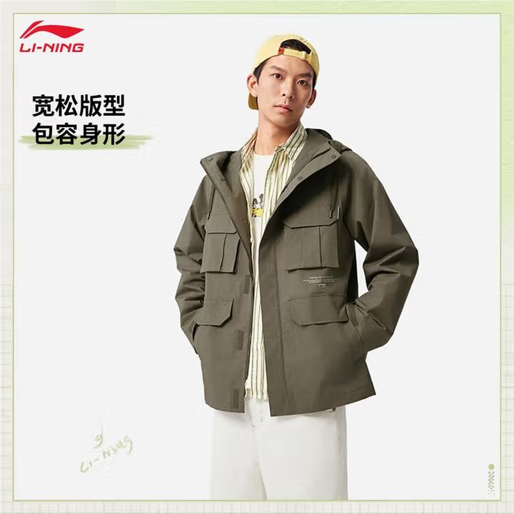 李宁男子2025春季秋连帽健身风衣运动外套AFDV187-3