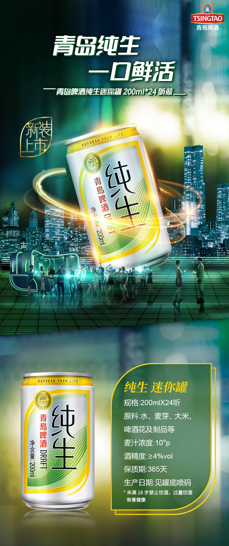 青岛啤酒纯生10度200ml*24听 迷你小罐啤 新品上市 包邮