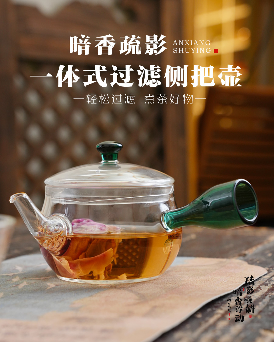 暗香疏影/淑仪侧把壶耐热高硼硅过滤一体玻璃泡茶壶小茶壶家用