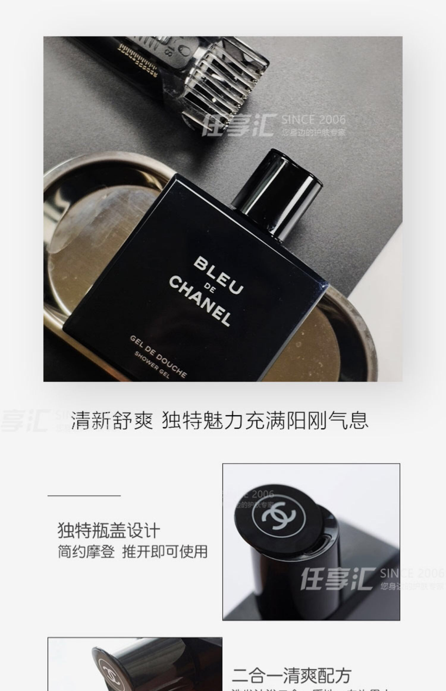 CHANEL香奈儿蔚蓝男士香水洗发沐浴露200ml 保湿清爽持久留香-金卡会员6折