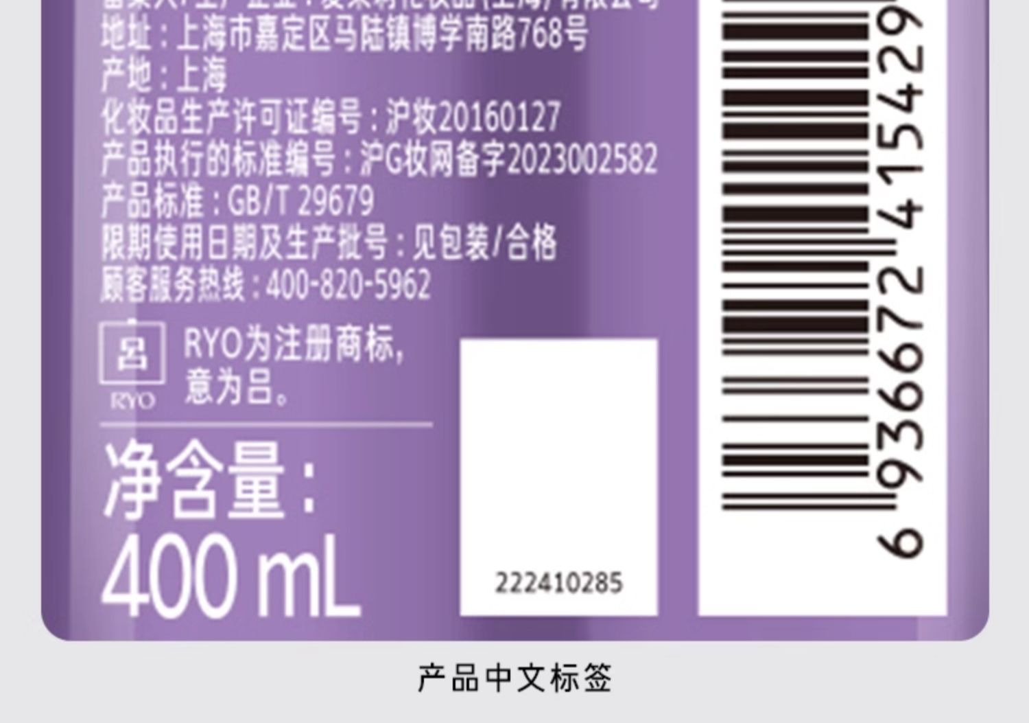 RYO吕三代 玻尿酸水光蓬弹洗发水400ml(玻尿酸吕)