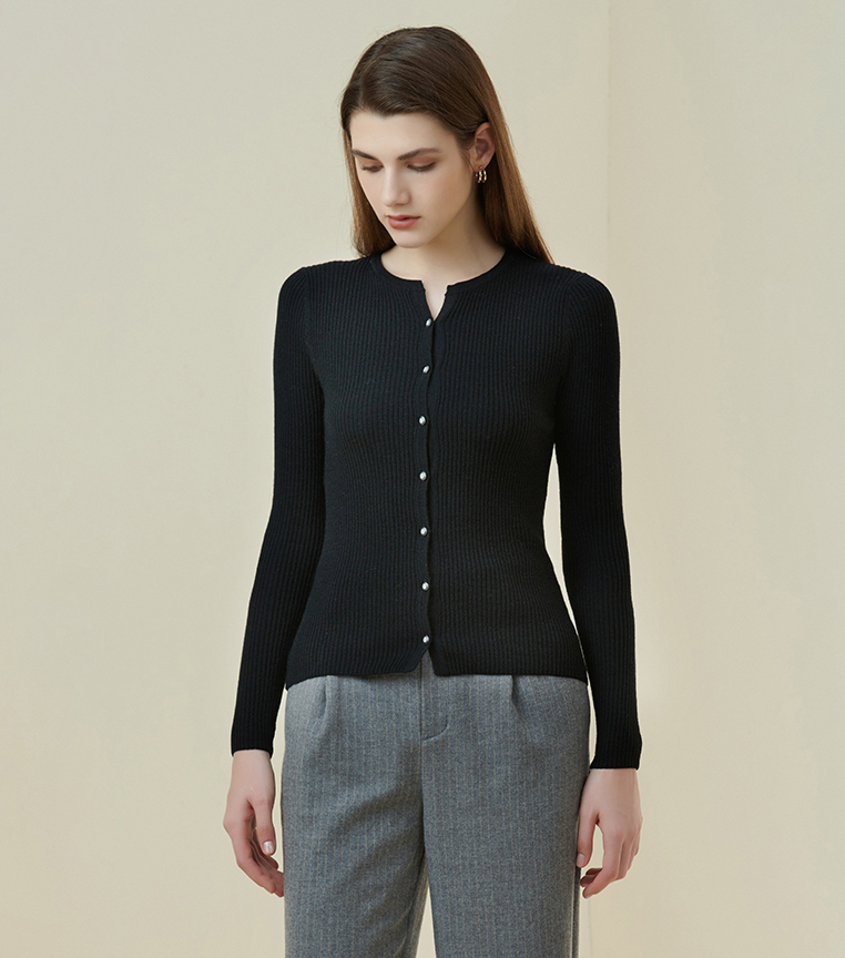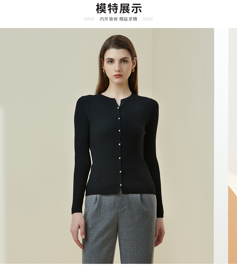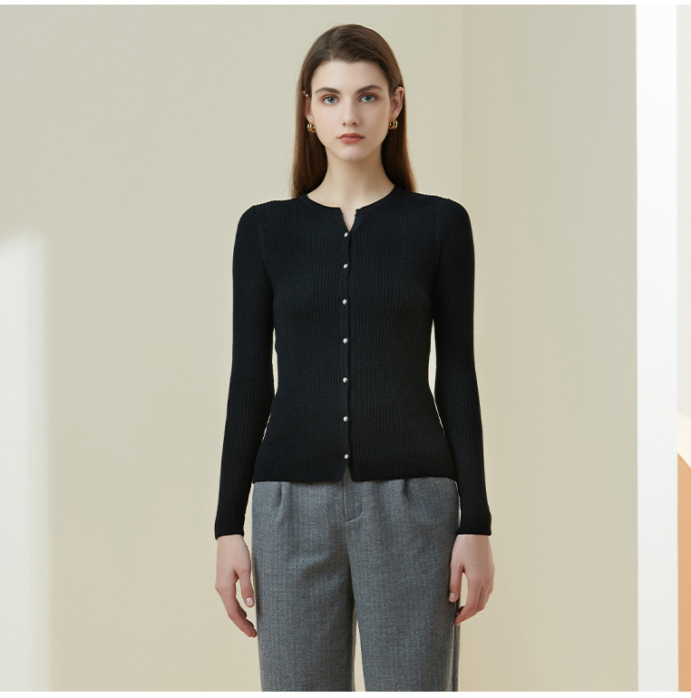 METTE2021年秋冬新品女士100%羊毛开衫时尚修身显瘦薄款针织外套