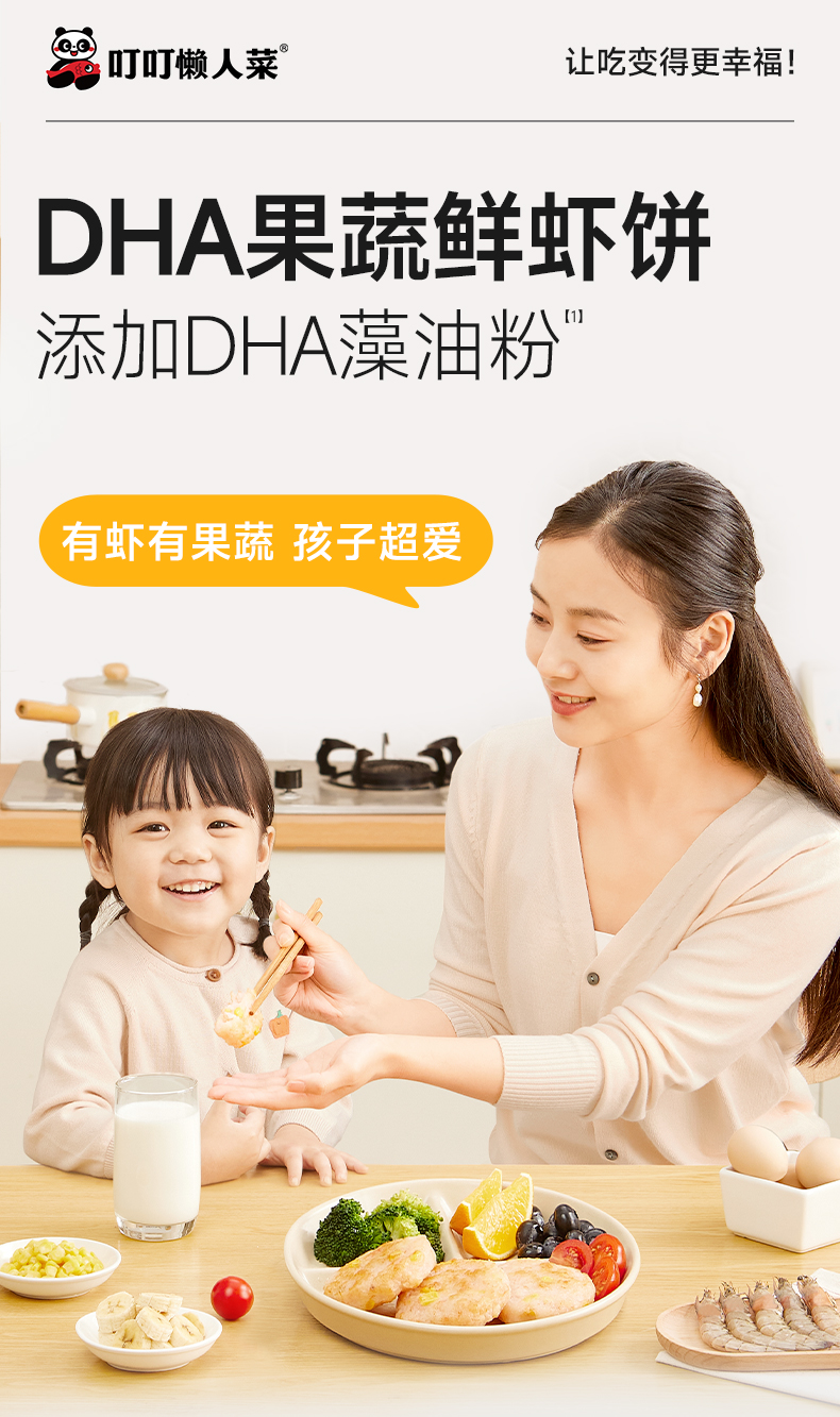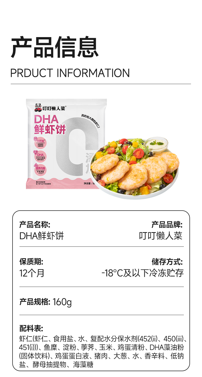 【叮叮懒人菜】 DHA果蔬鲜虾饼160g/包 大虾配果蔬 营养早餐很美味