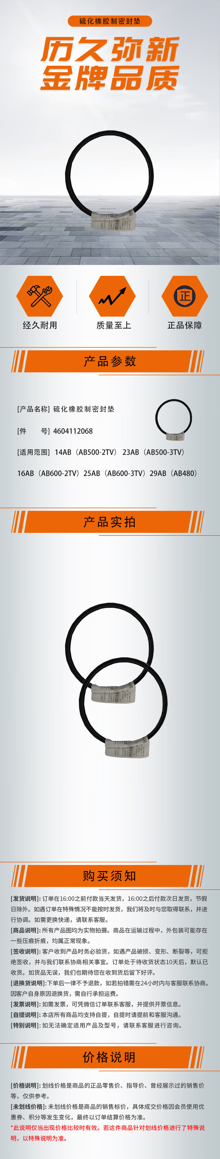 【硫化橡胶制密封垫4604112068】适用于14AB(AB500-2TV) 23AB(AB500-3TV) 16AB(AB600-2TV)25AB(AB600-3TV)29AB(AB480)