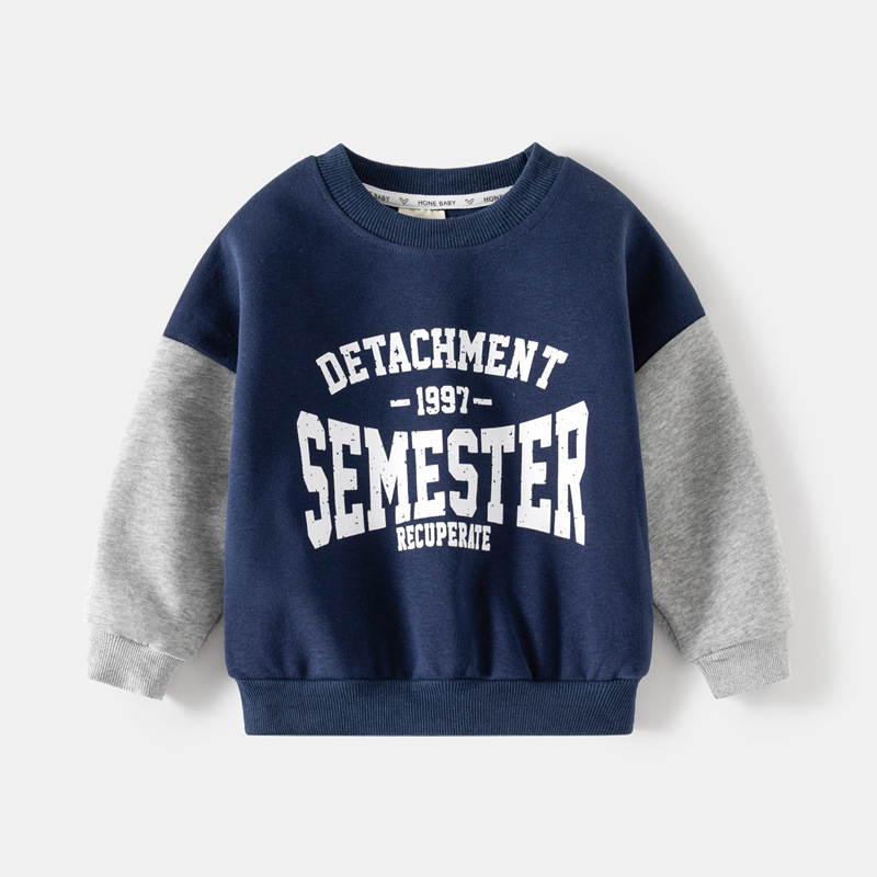 韩版童装【春秋装 男童假两件卫衣】宝宝宽松上衣 儿童拼袖潮衫