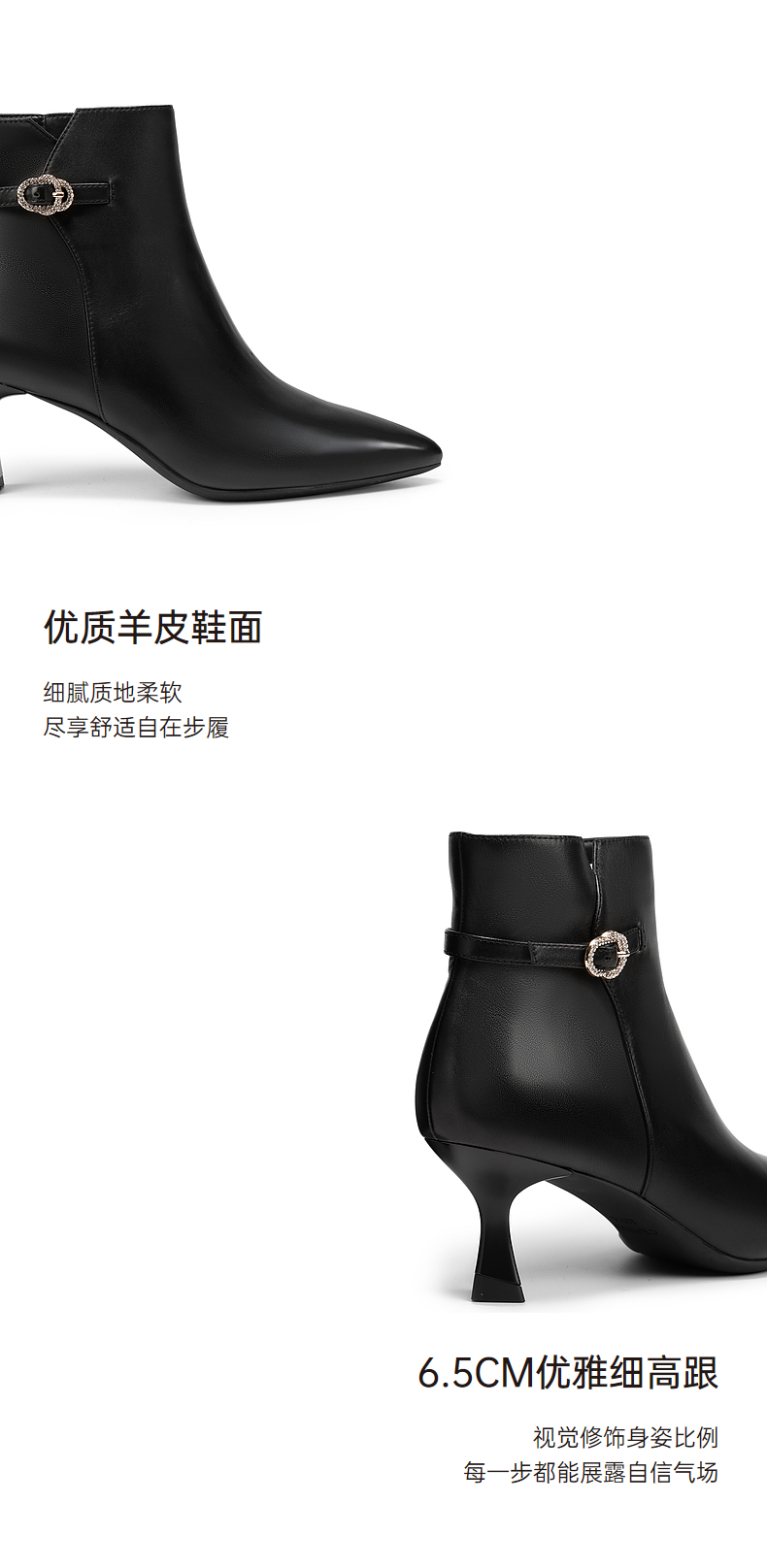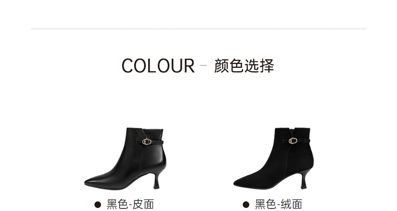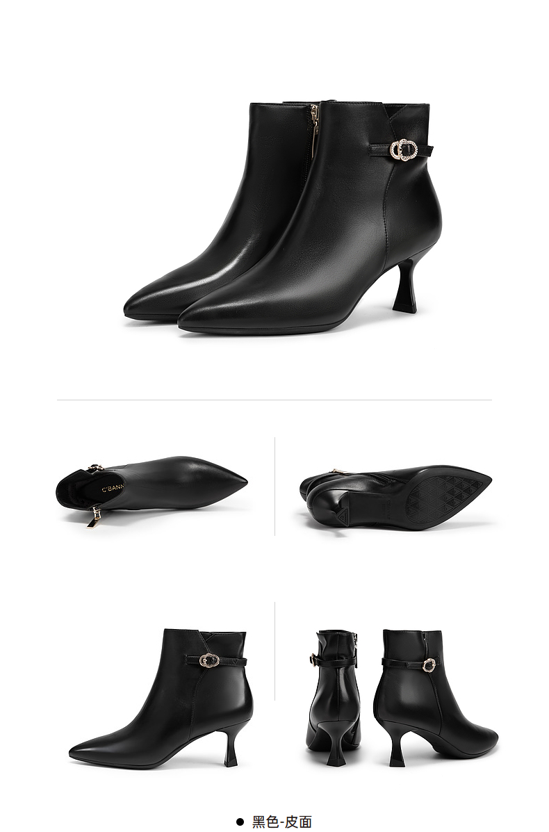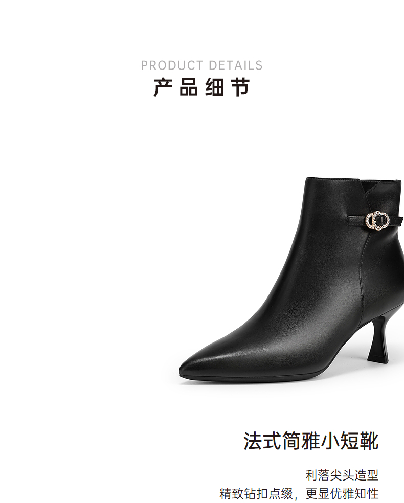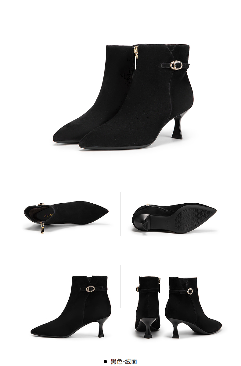 千百度羊皮细高跟时装靴女冬季瘦瘦靴通勤黑色皮鞋短靴子A24577521