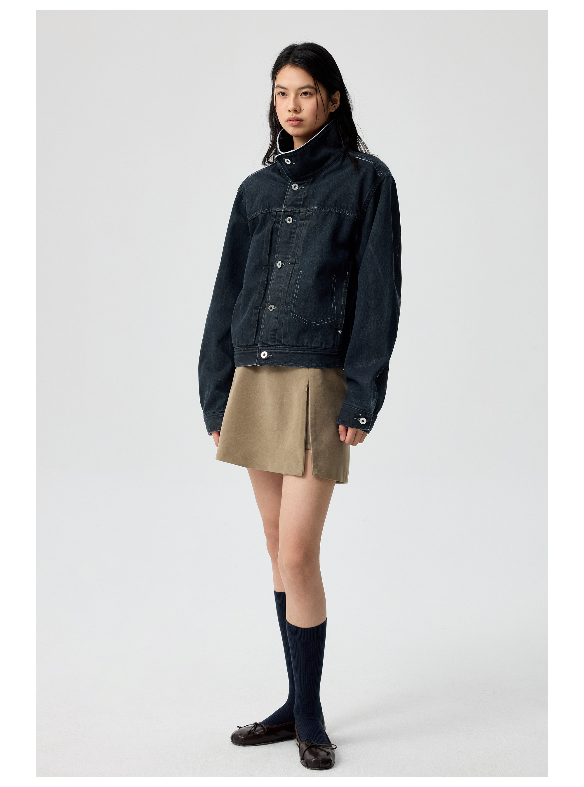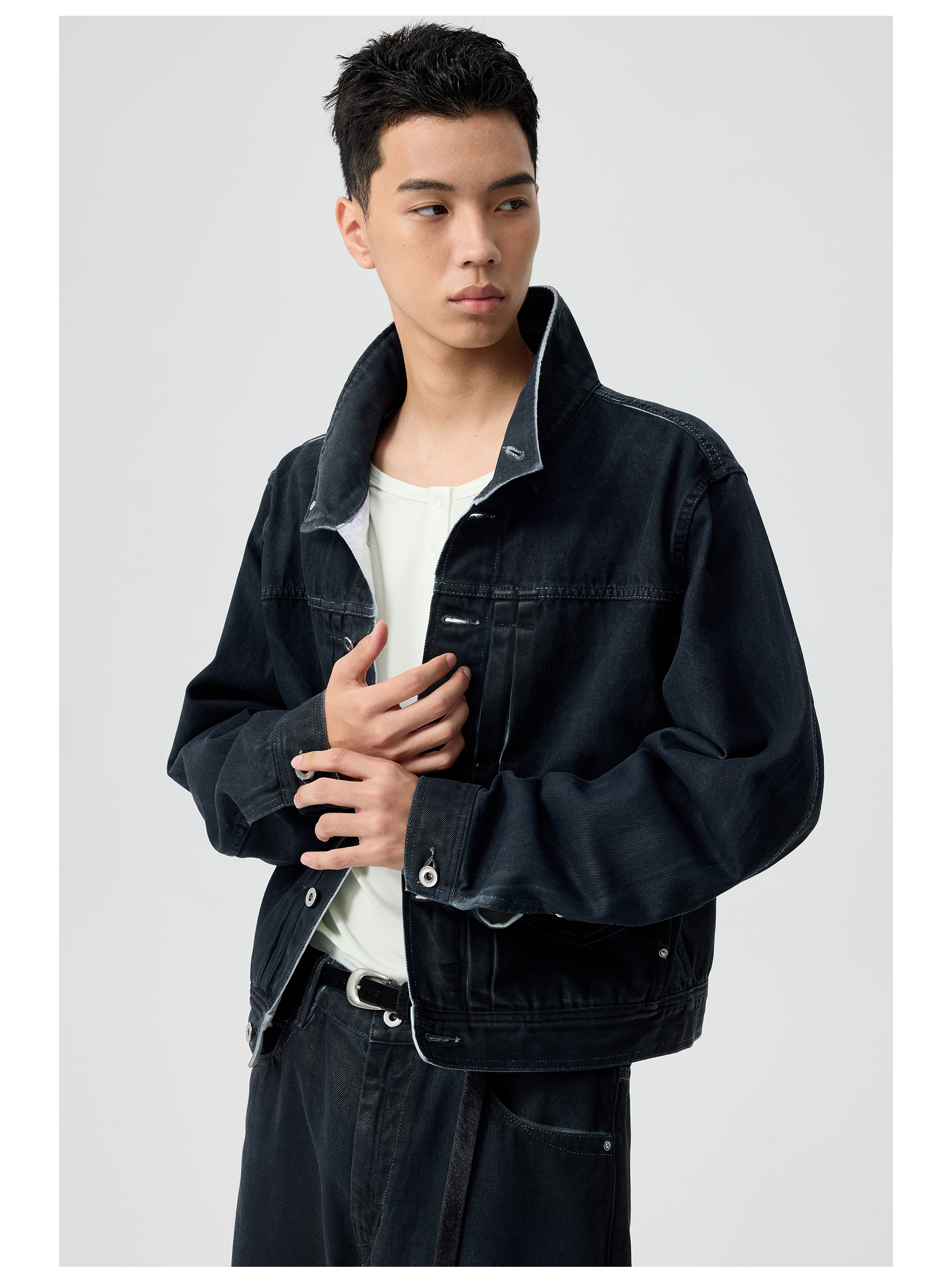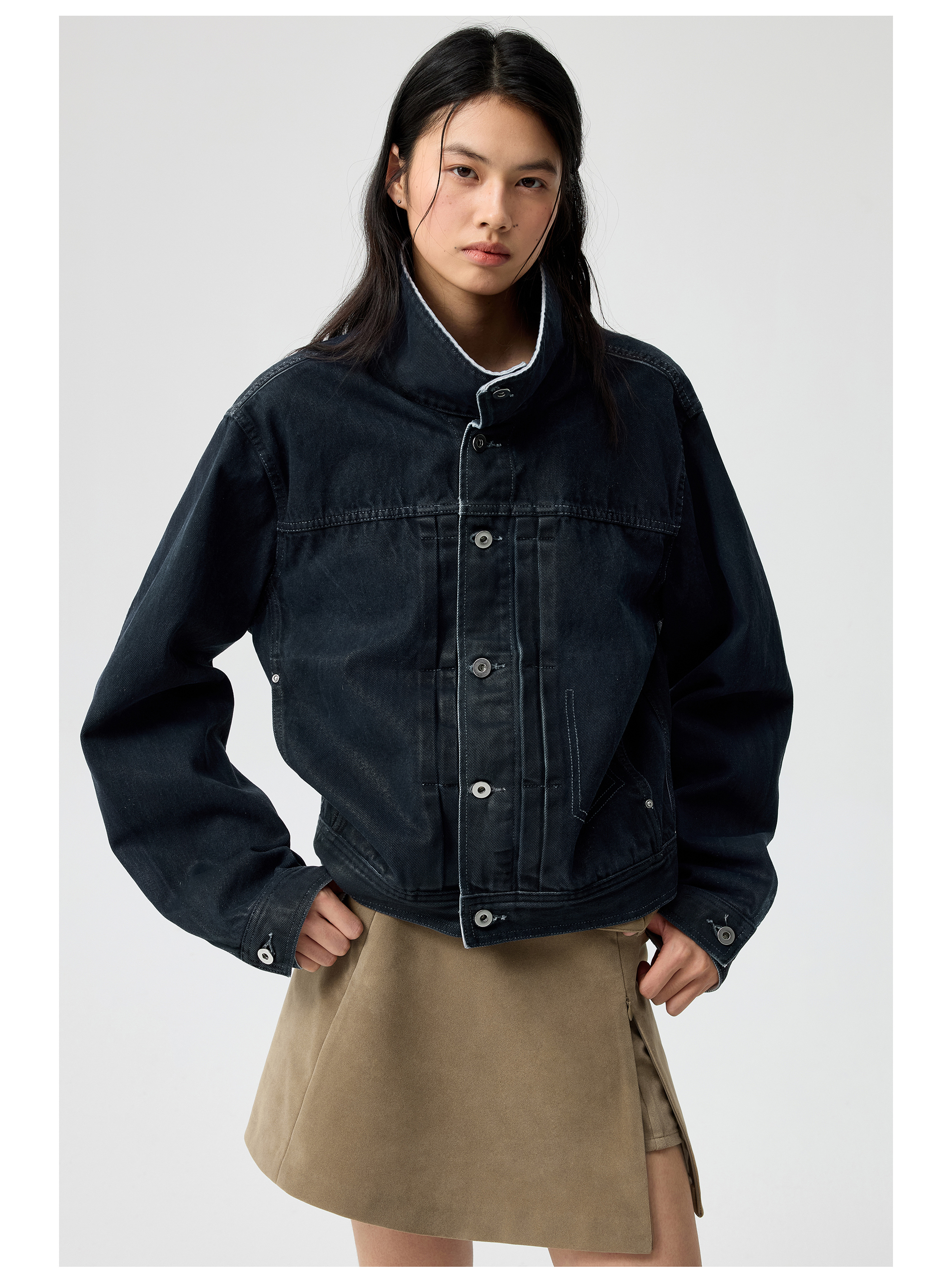 Simple Project/Y25145/涂层刷蜡修身牛仔短夹克