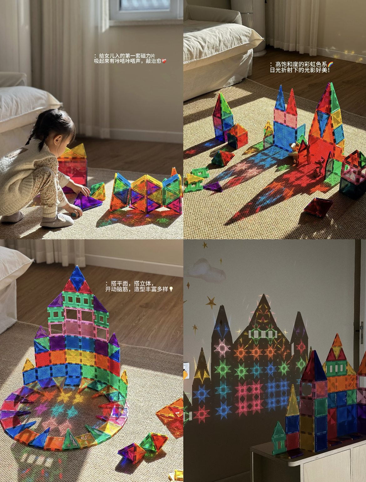 作为一款可以从1岁开始一直玩到10多岁的百变玩具,在搭建过程中不仅会获得成就感,还能进行各种锻炼和启蒙。磁力片因此也获得了国内外不少知名早教机构和公众号的大力推广