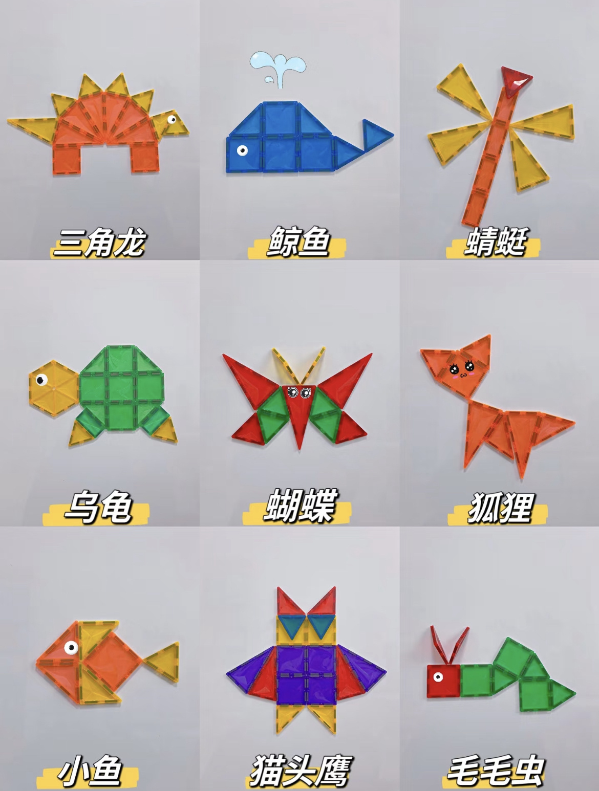 用磁力片搭出小动物,再贴生小眼睛,更加生动啦‼️