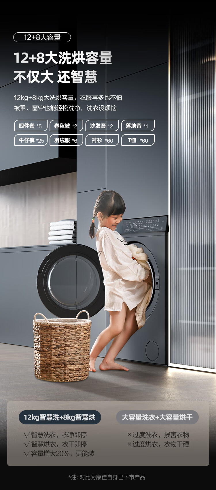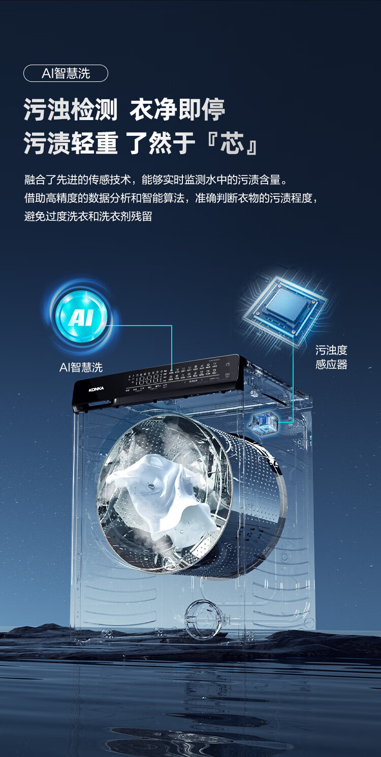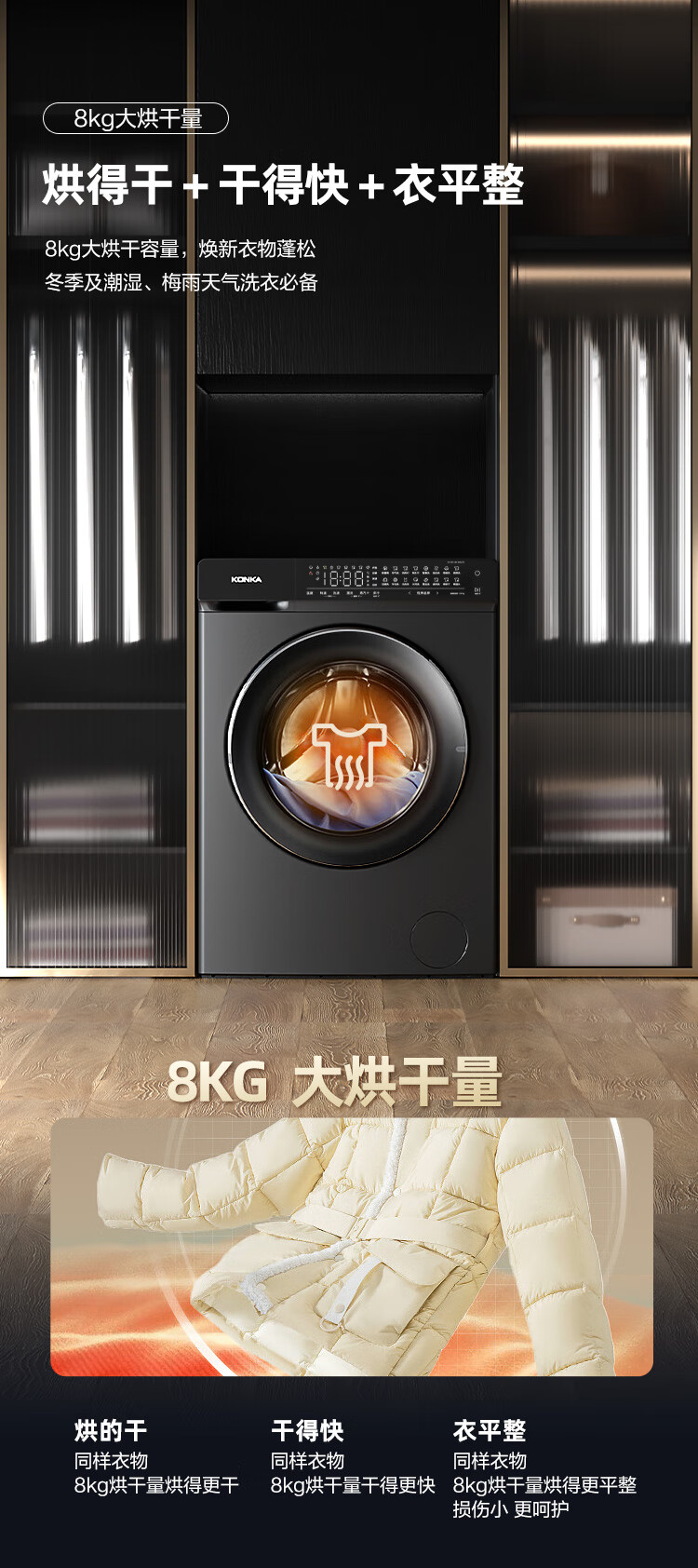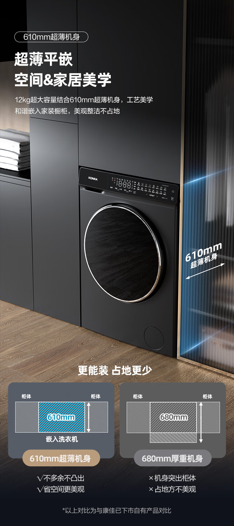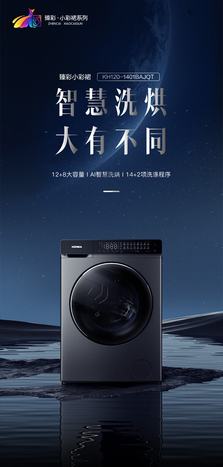 康佳(KONKA)KH120-1401BAJQT 滚筒洗衣机全自动 臻彩小彩裙 12KG洗烘一体 巴氏除菌 触控大屏 1.08洗净比