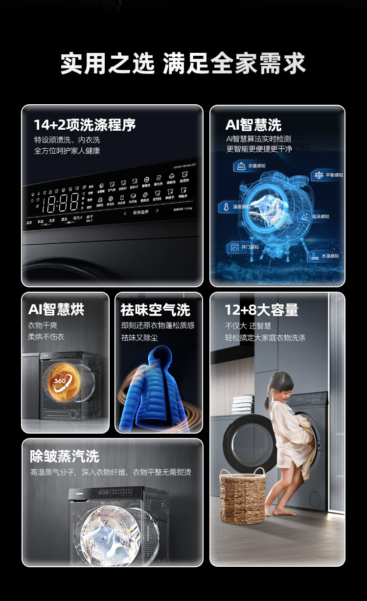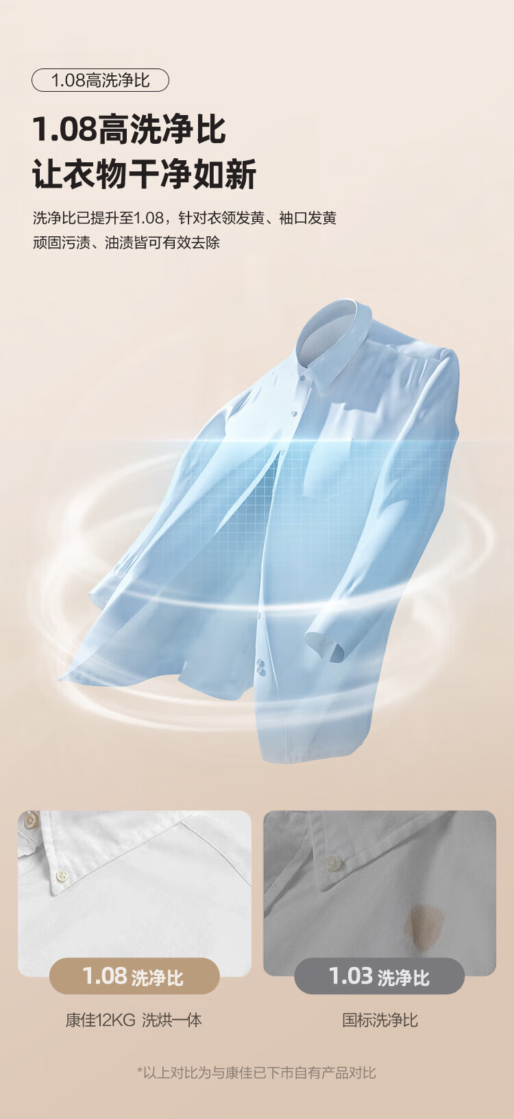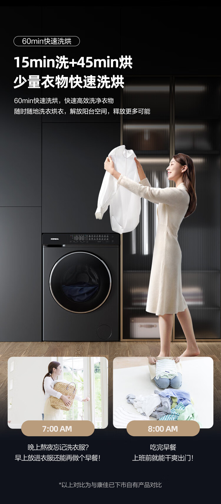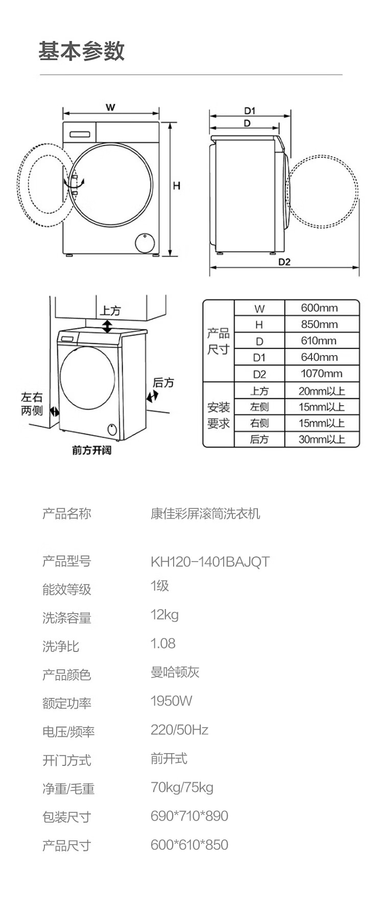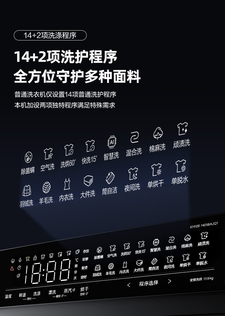 康佳(KONKA)KH120-1401BAJQT 滚筒洗衣机全自动 臻彩小彩裙 12KG洗烘一体 巴氏除菌 触控大屏 1.08洗净比