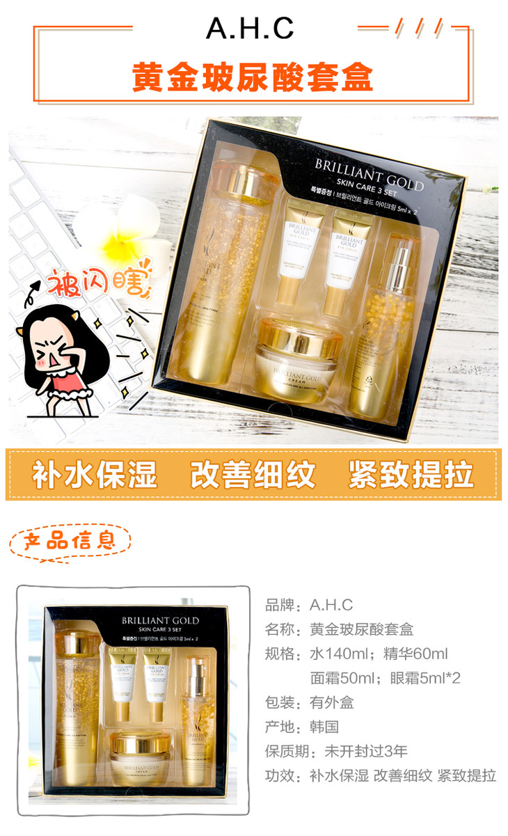 韩国AHC黄金水乳套装蜗牛玻尿酸水精华面霜三件套盒焕肤补水抗皱