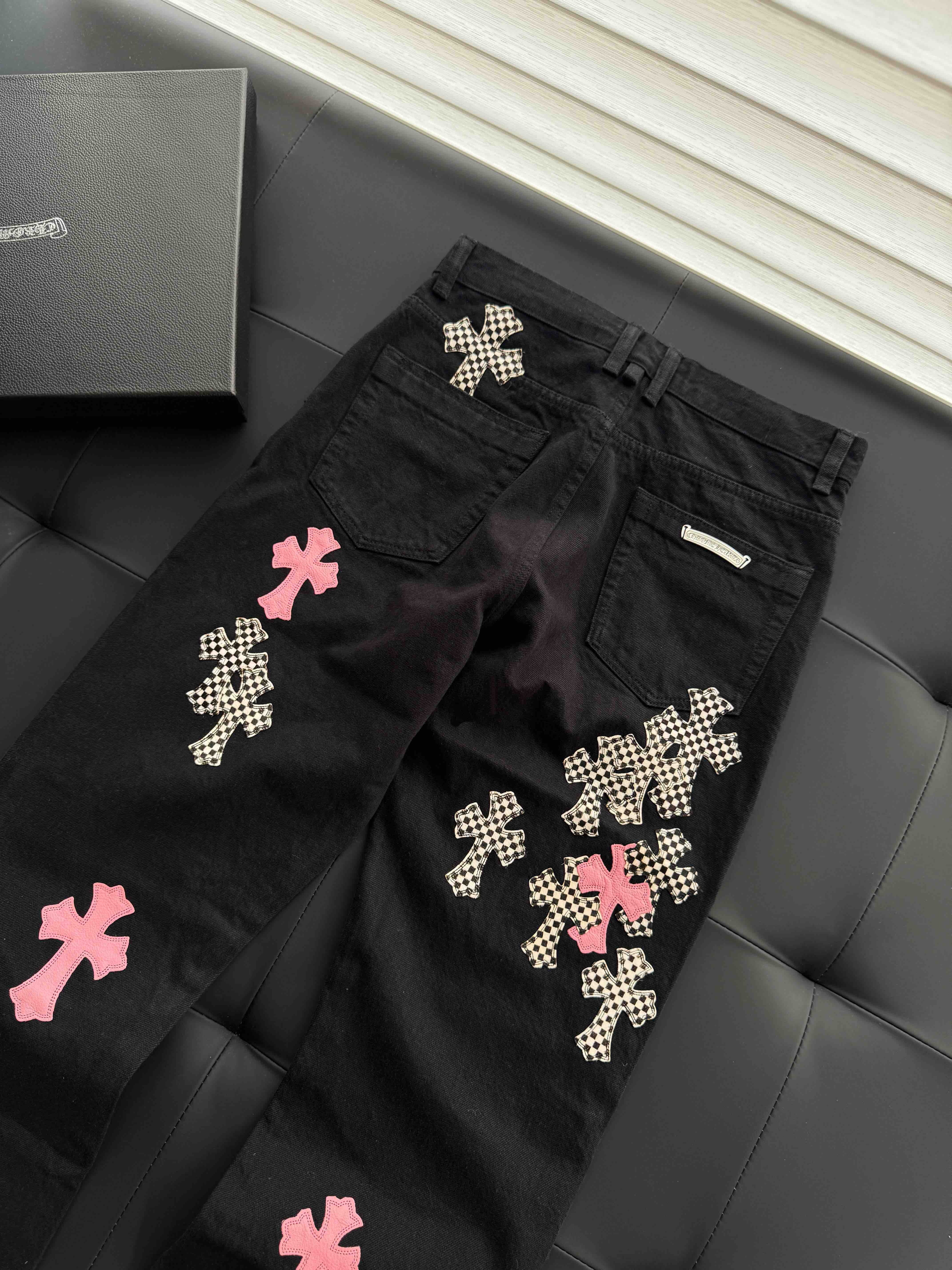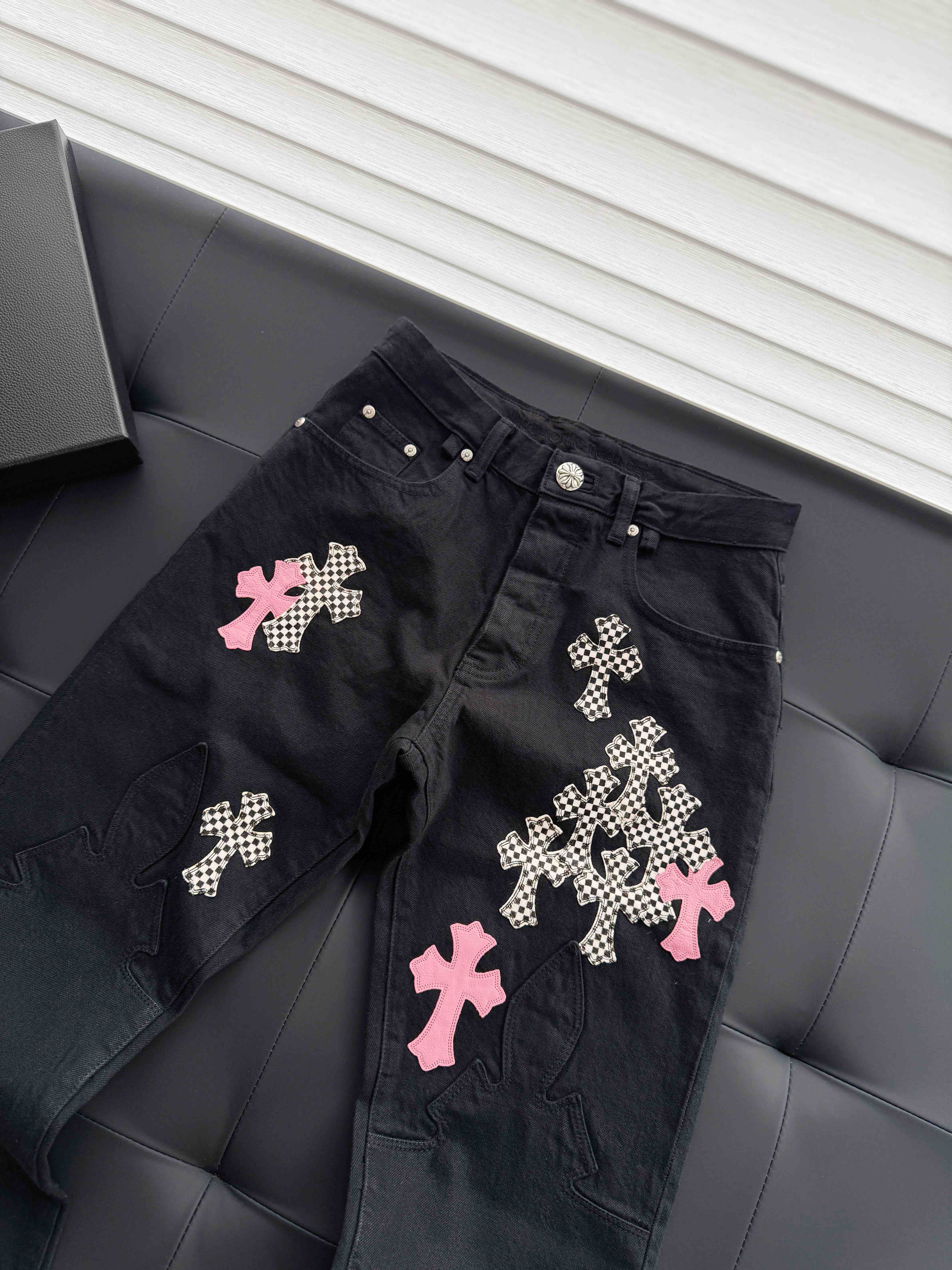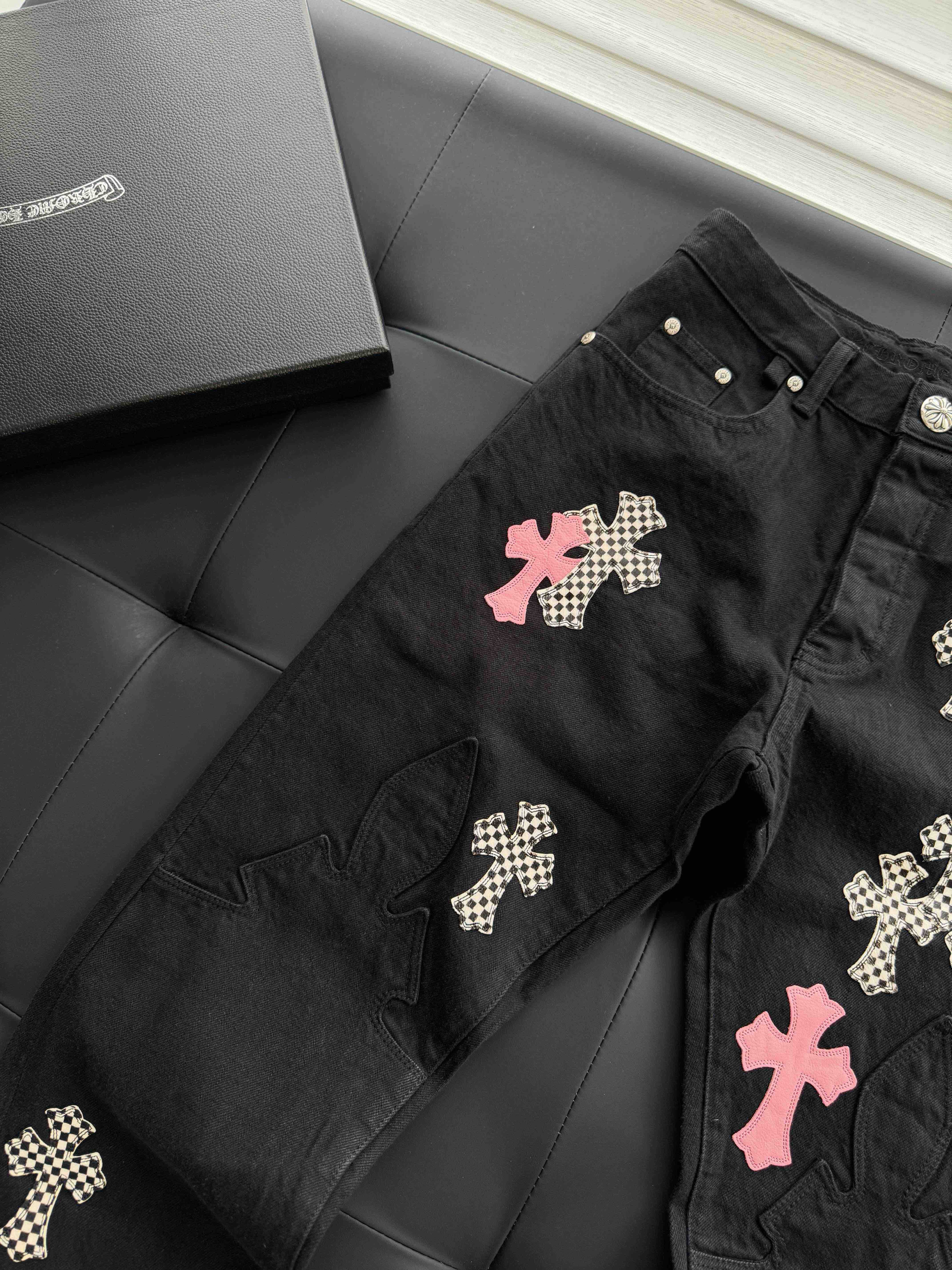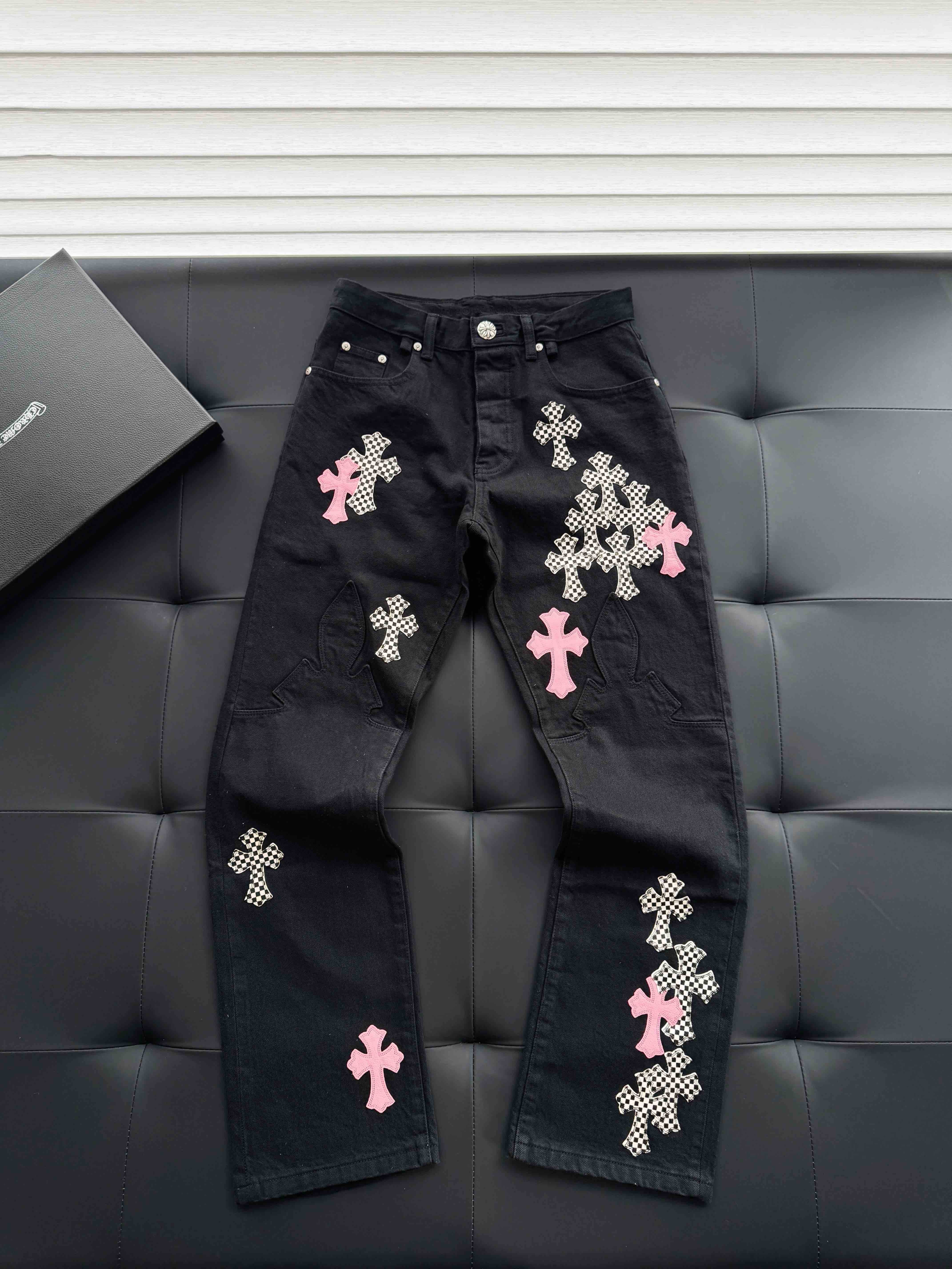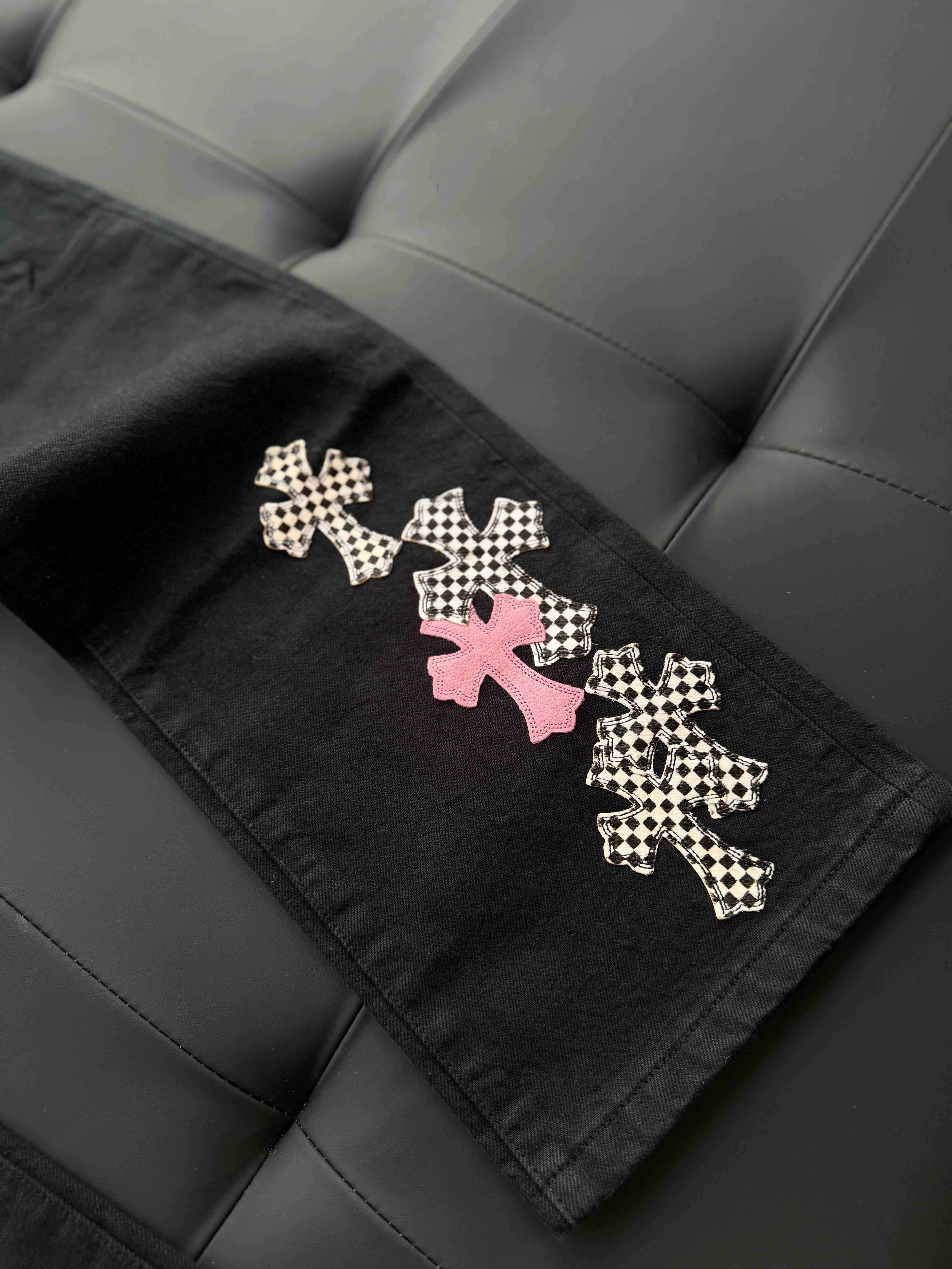 CHR-SH 十字架棋盘格火焰牛仔裤