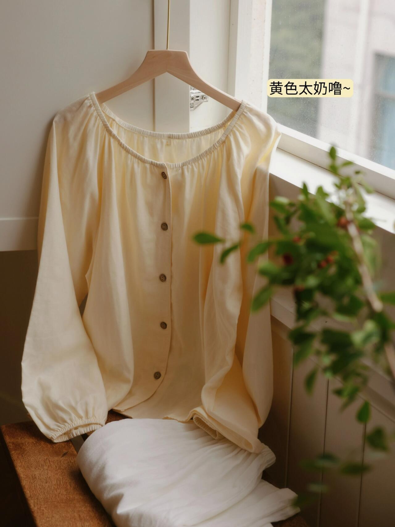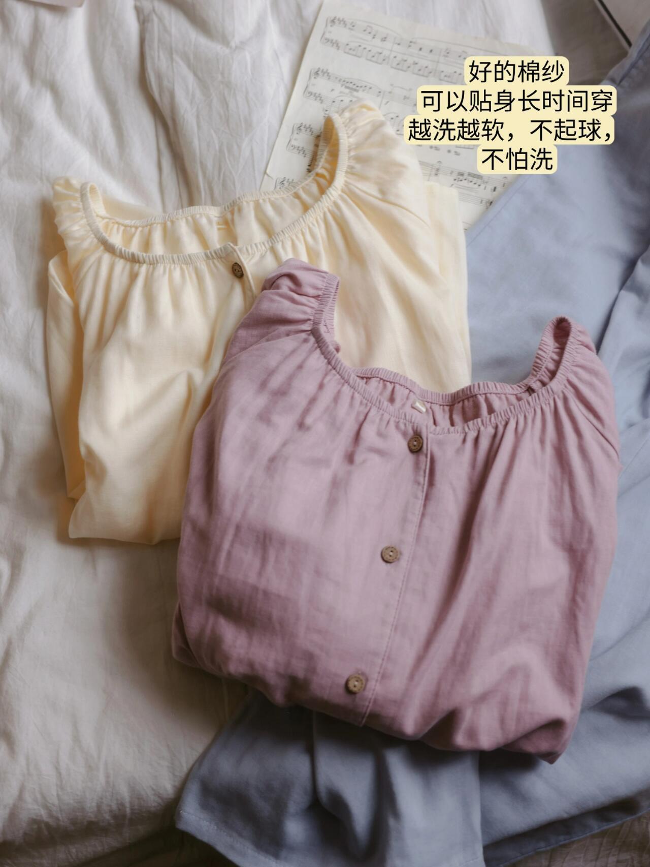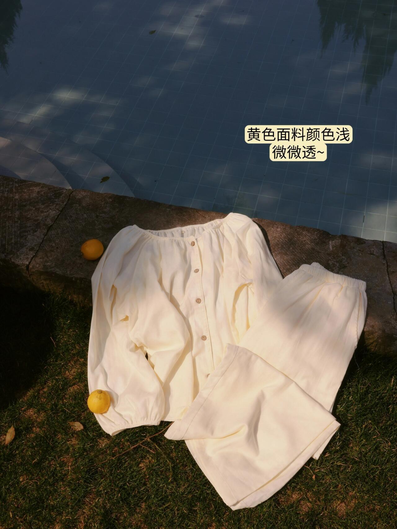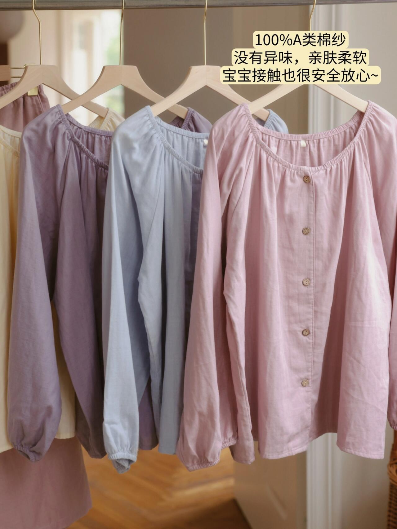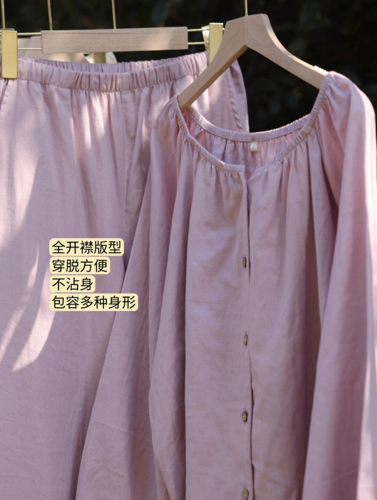 A类棉纱【简约纯色宽松睡衣】秋冬圆领长袖长裤睡衣套装 春秋家居服可外穿