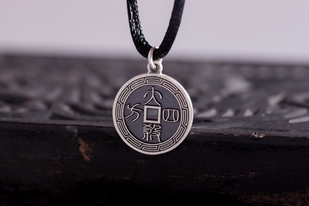 尺寸:直径约17.4毫米,厚约1.5毫米,钱币孔径约2毫米,穿绳孔径约2.7毫米,重约2.8克(手工作品有少许误差,请知晓)。