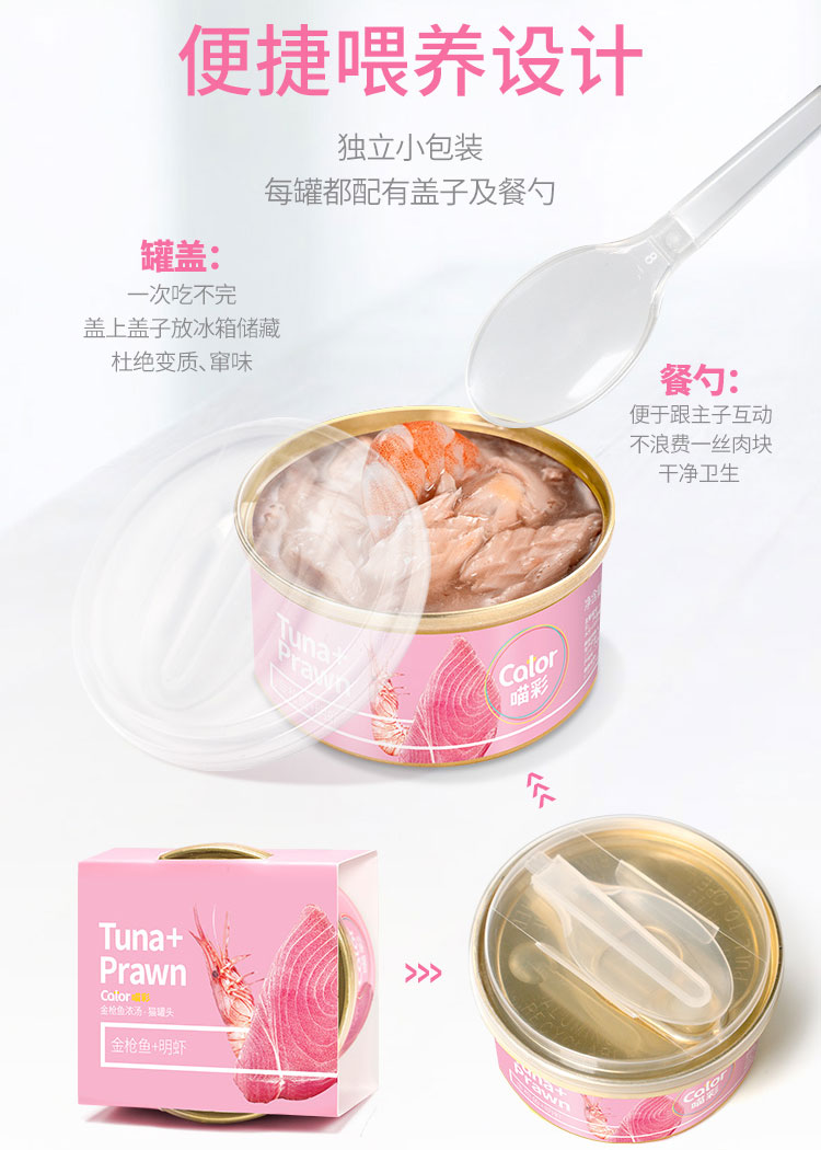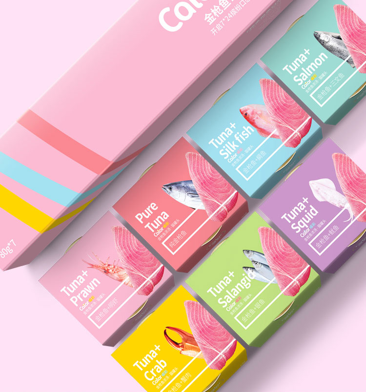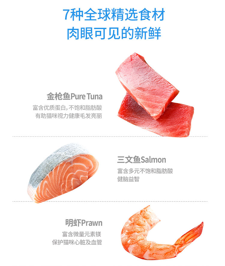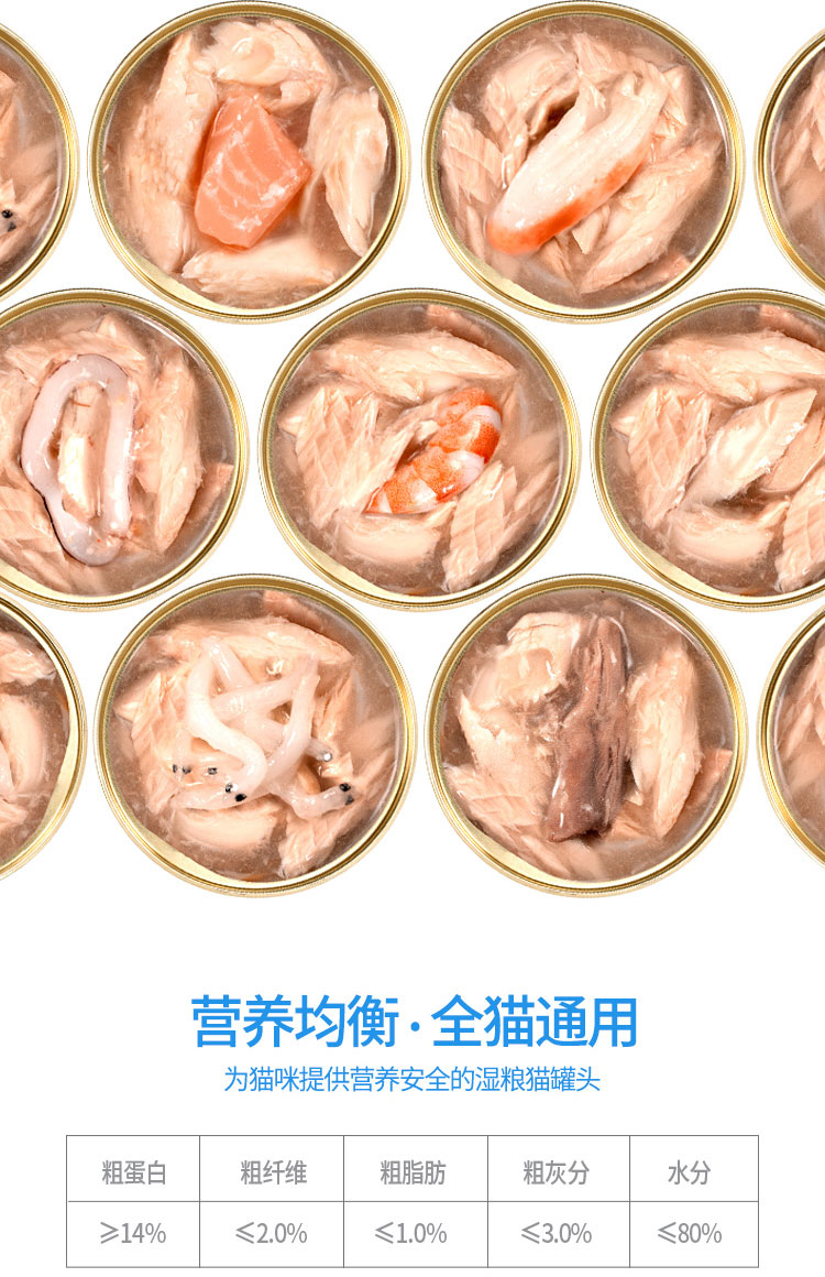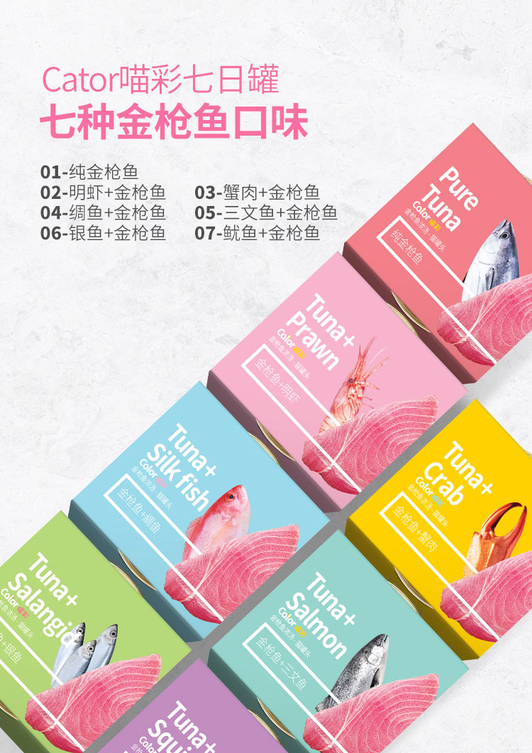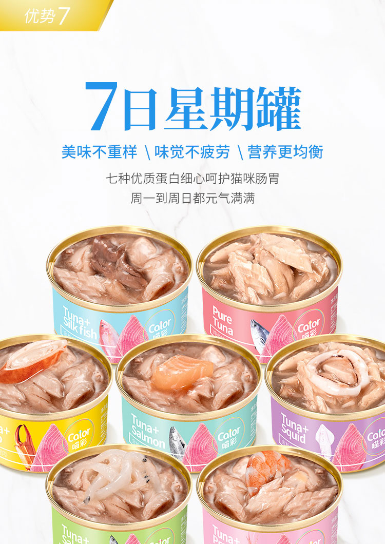 喵彩七日罐 大目金枪鱼系列 金枪鱼+6种海鲜混合 80gx7罐 喵咪零食罐头 大块金枪鱼吃着更放心