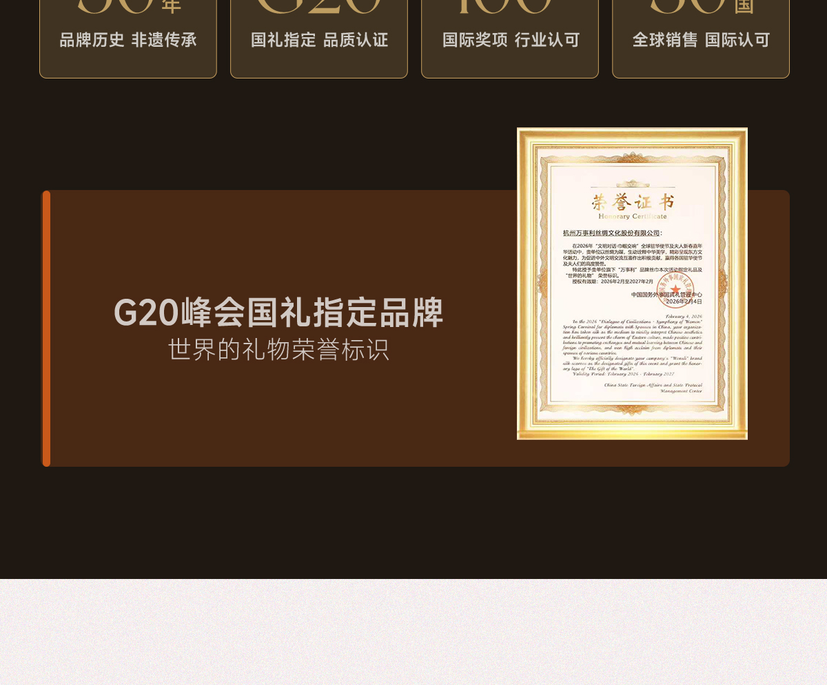 万事利专注丝绸40余年,是服务于多个世界级盛会的丝绸品牌。中国丝绸品牌万事利品质保证,中国丝绸协会倾情推荐!