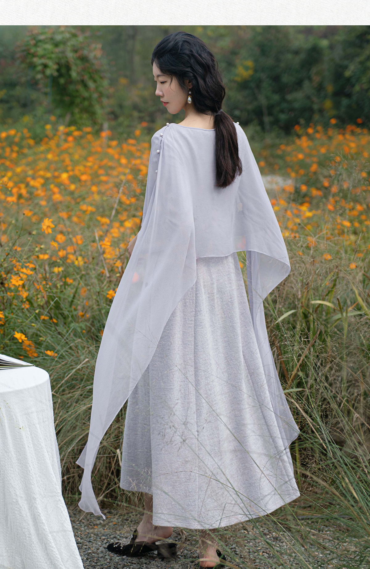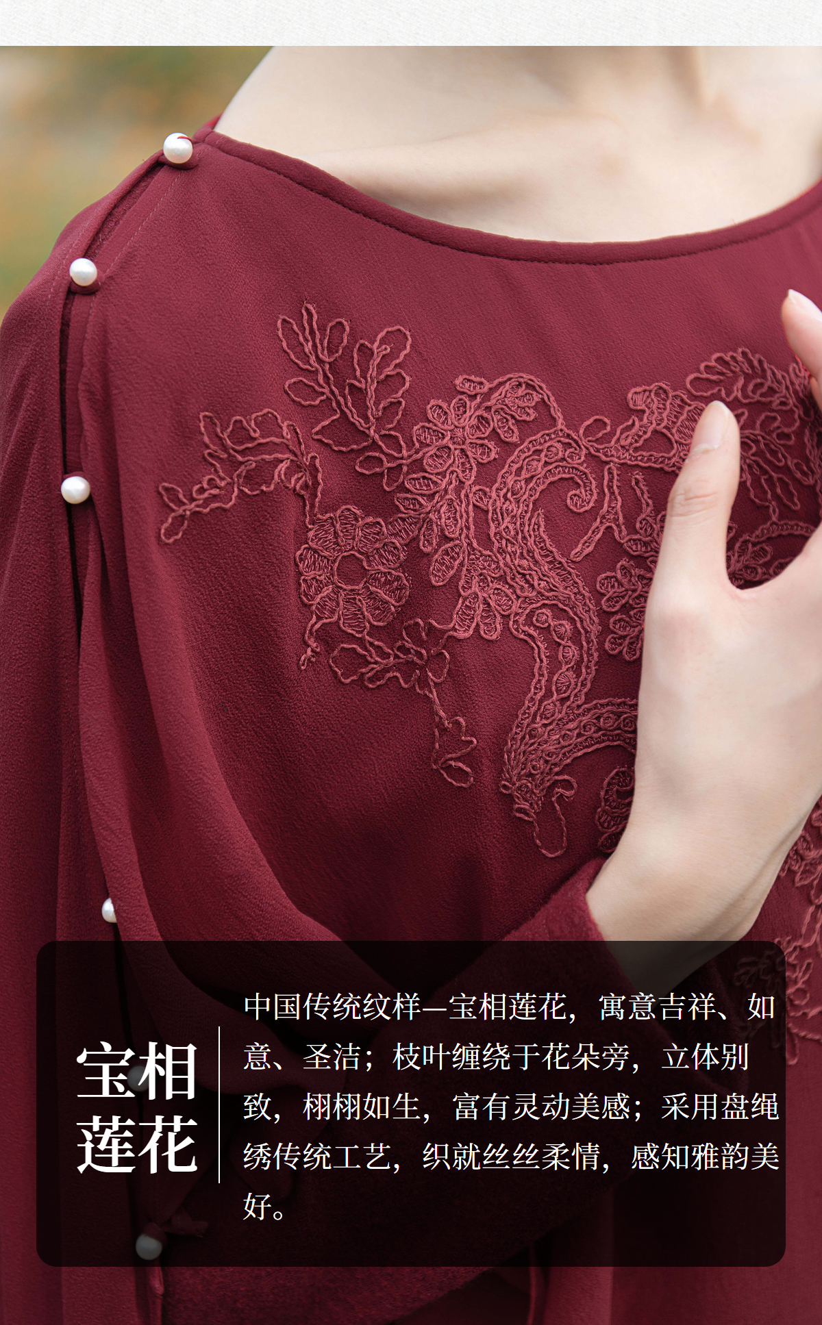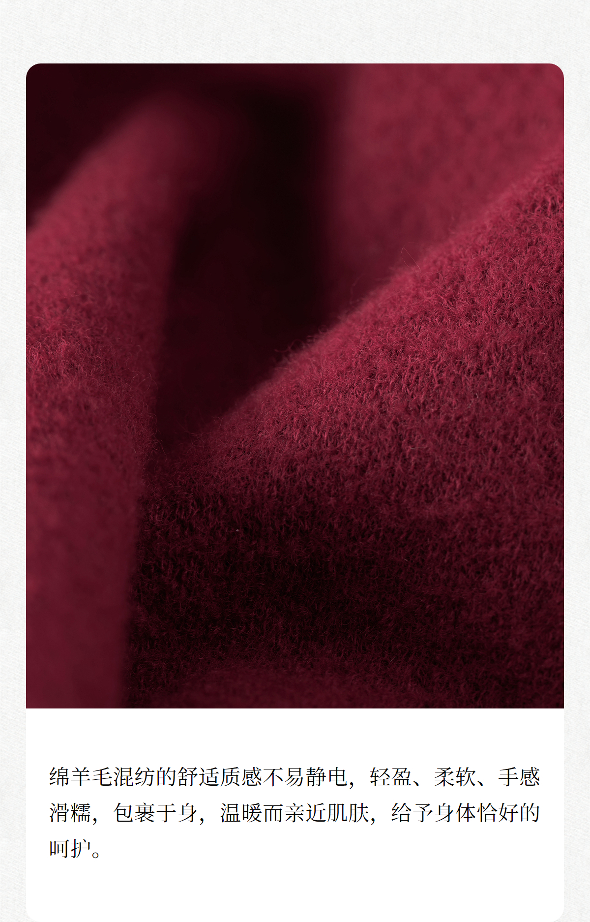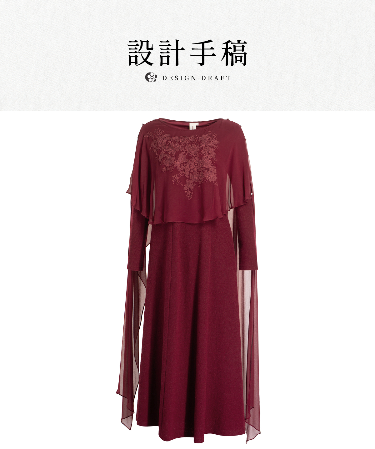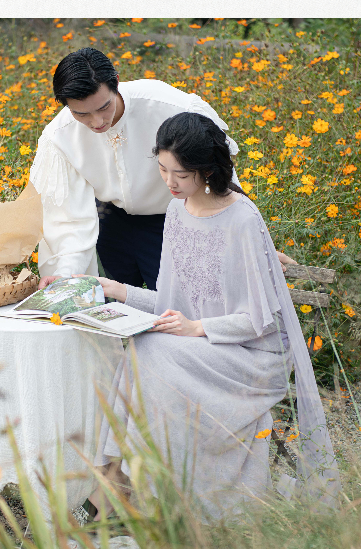 【林栖设计小店】绵羊毛混纺连衣裙绣花真丝披肩2023秋冬新品复古长裙女1934123