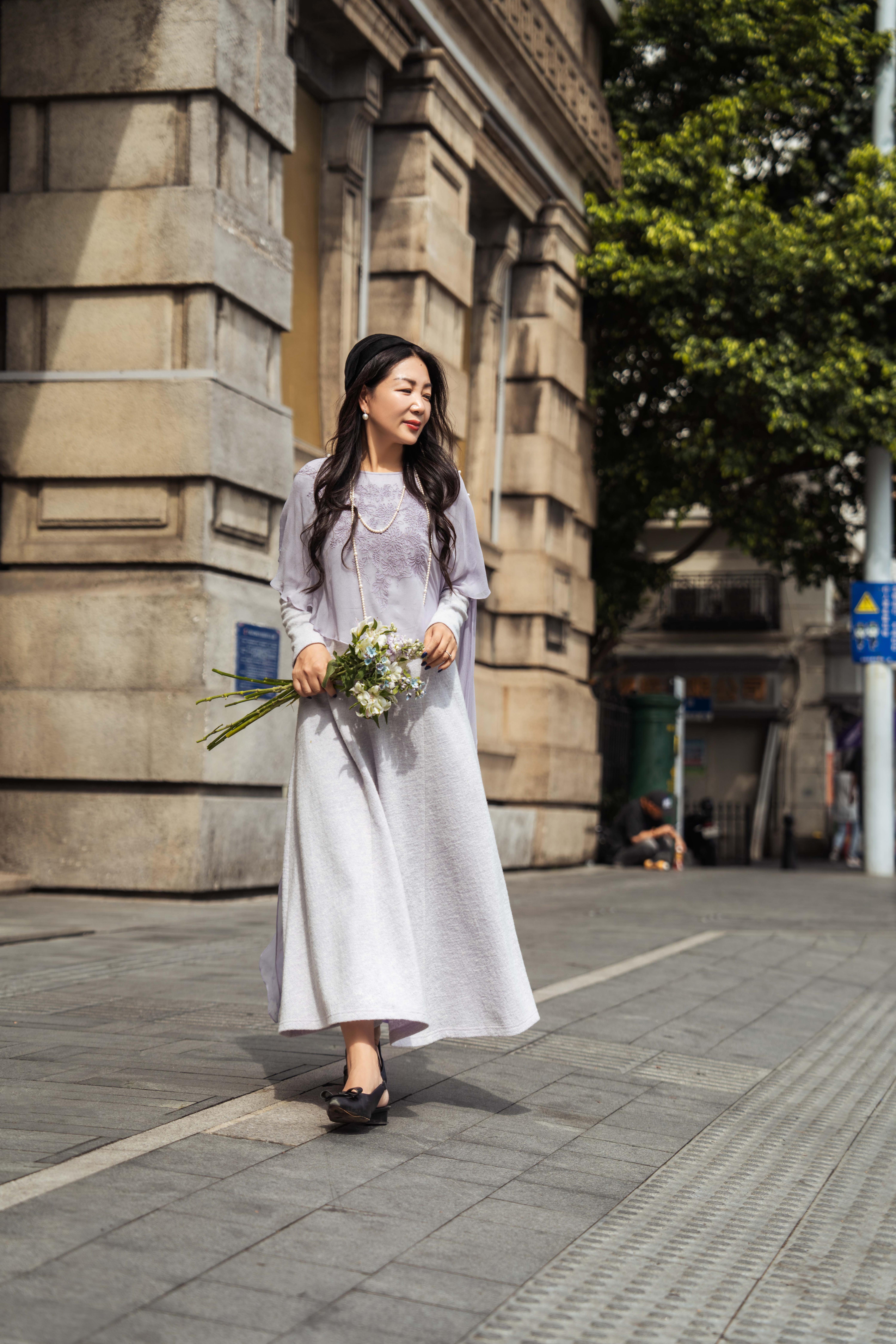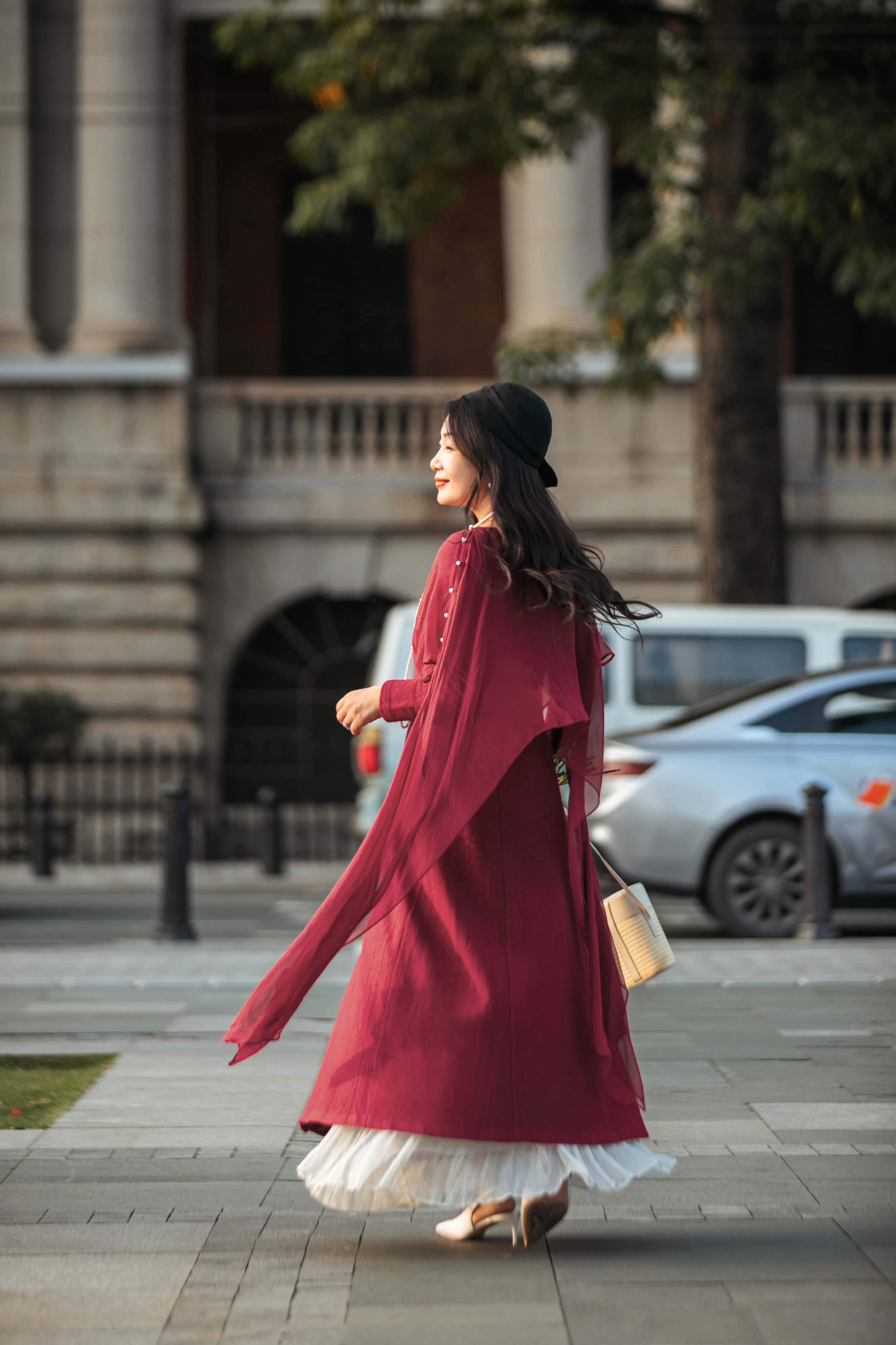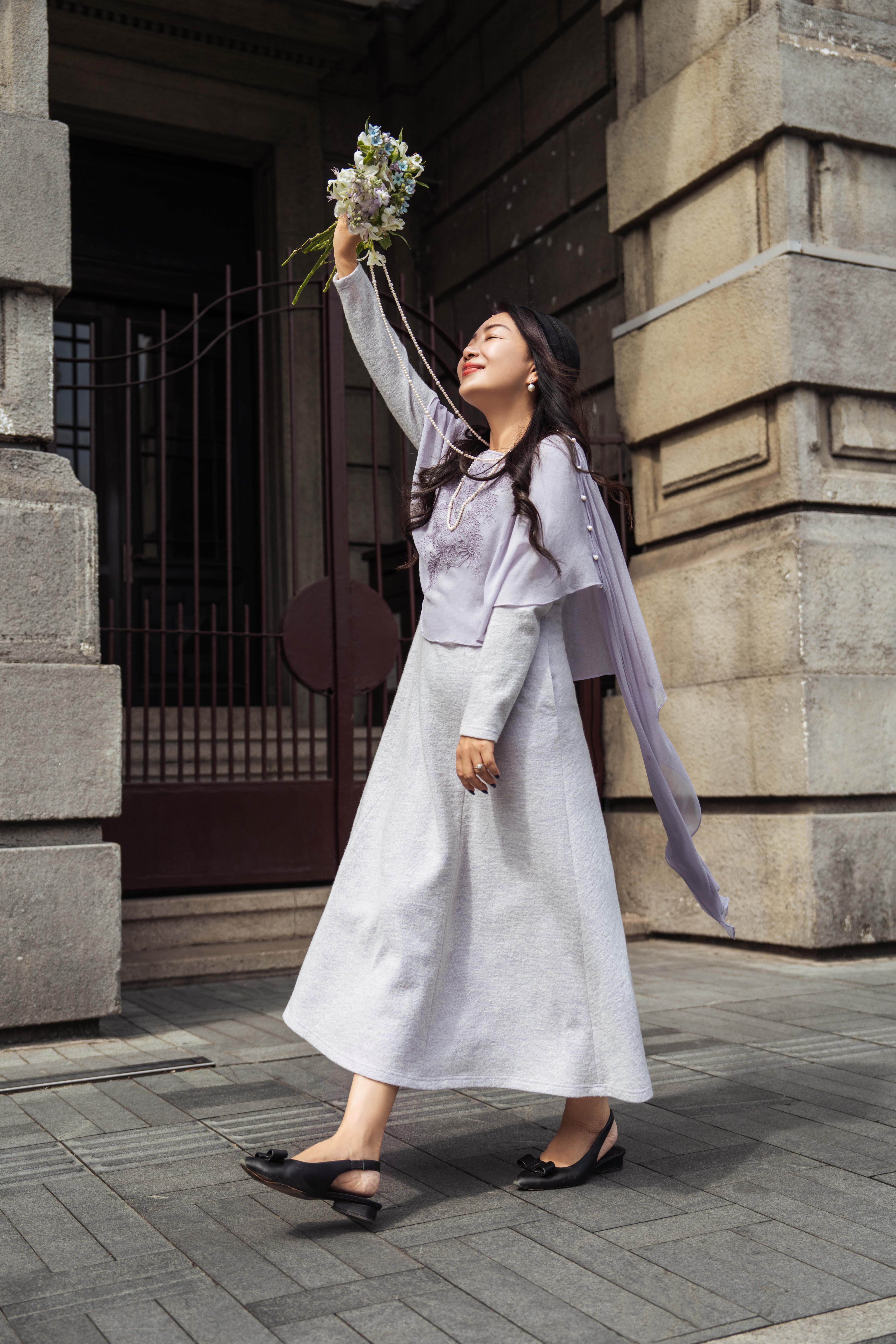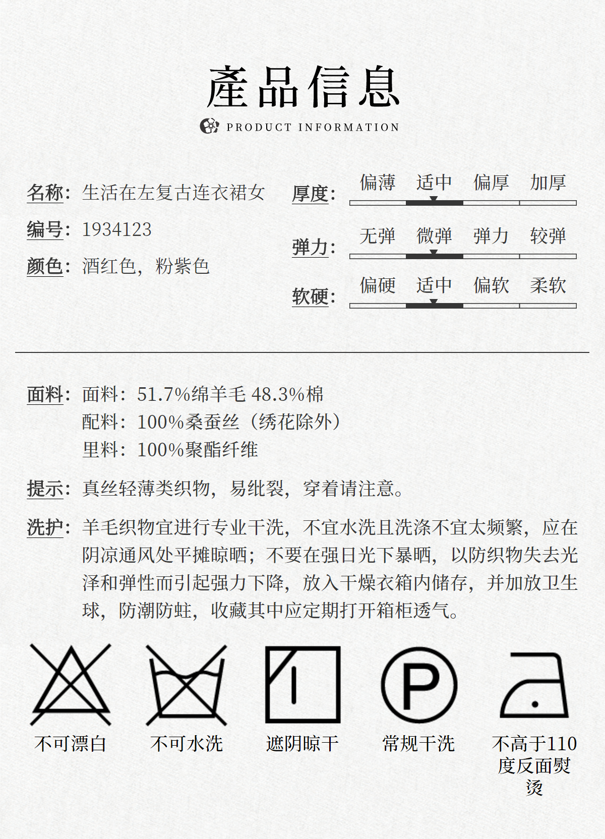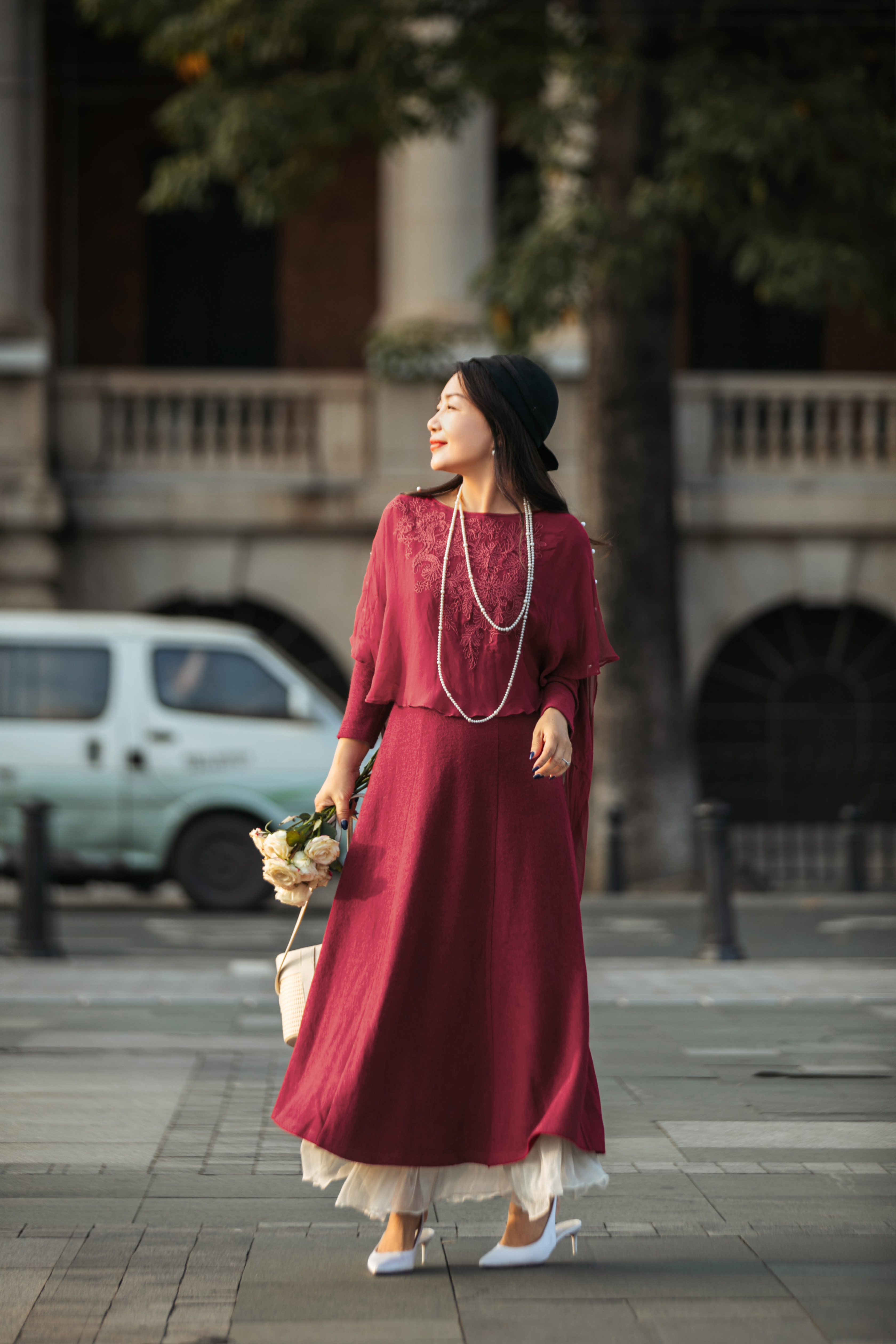 【林栖设计小店】绵羊毛混纺连衣裙绣花真丝披肩2023秋冬新品复古长裙女1934123