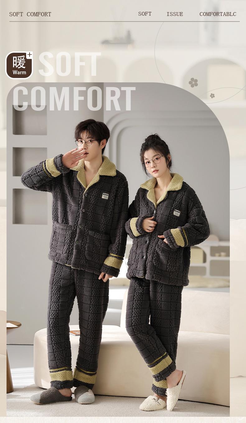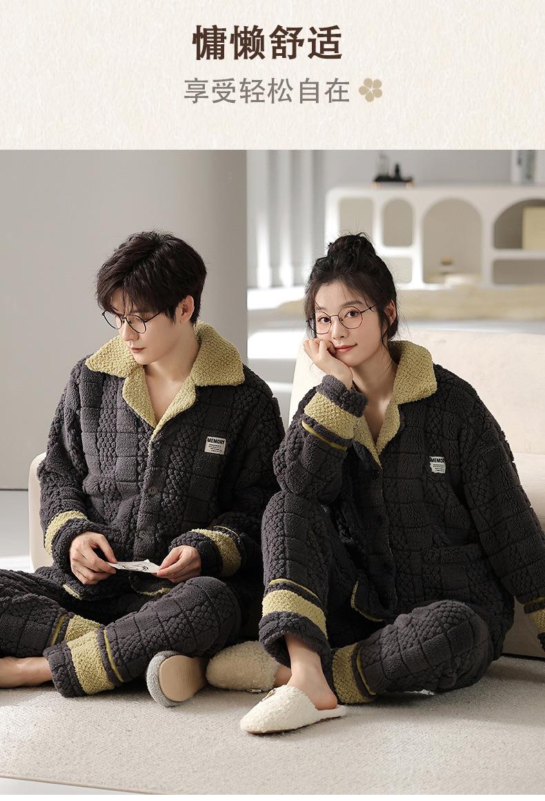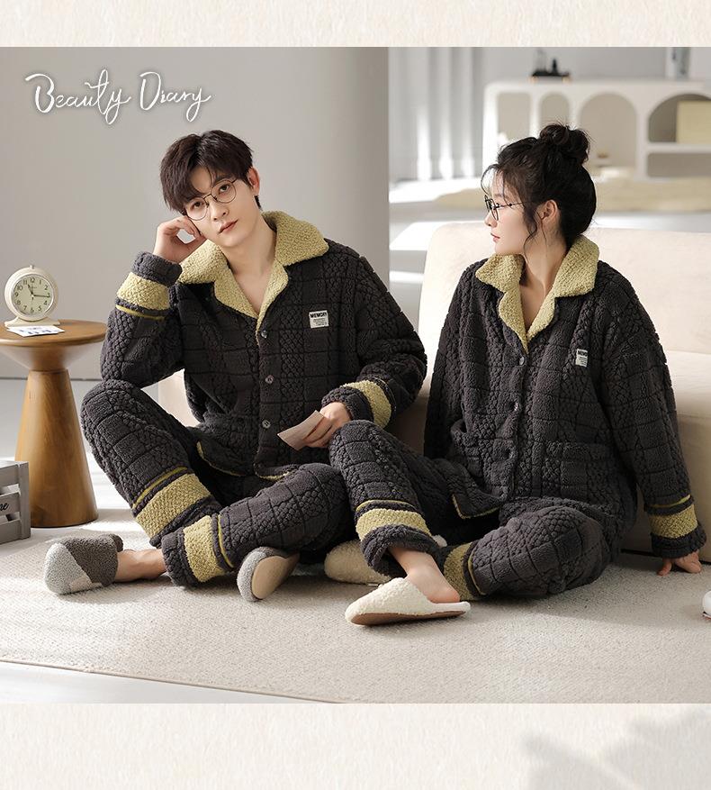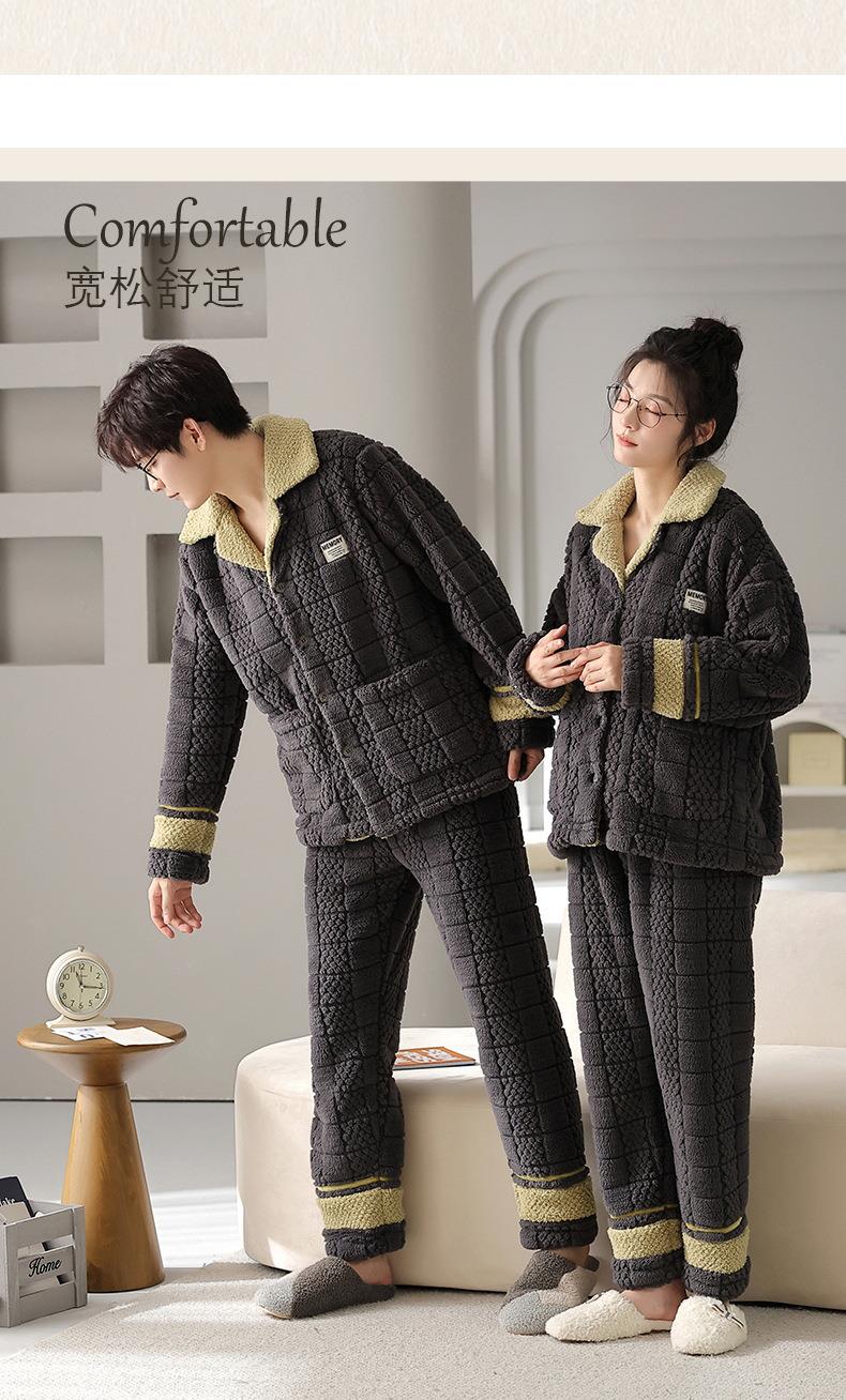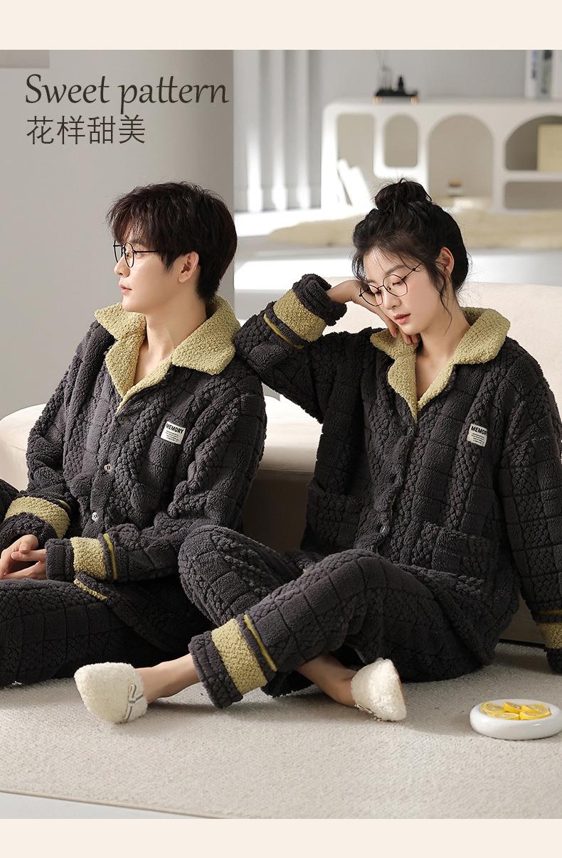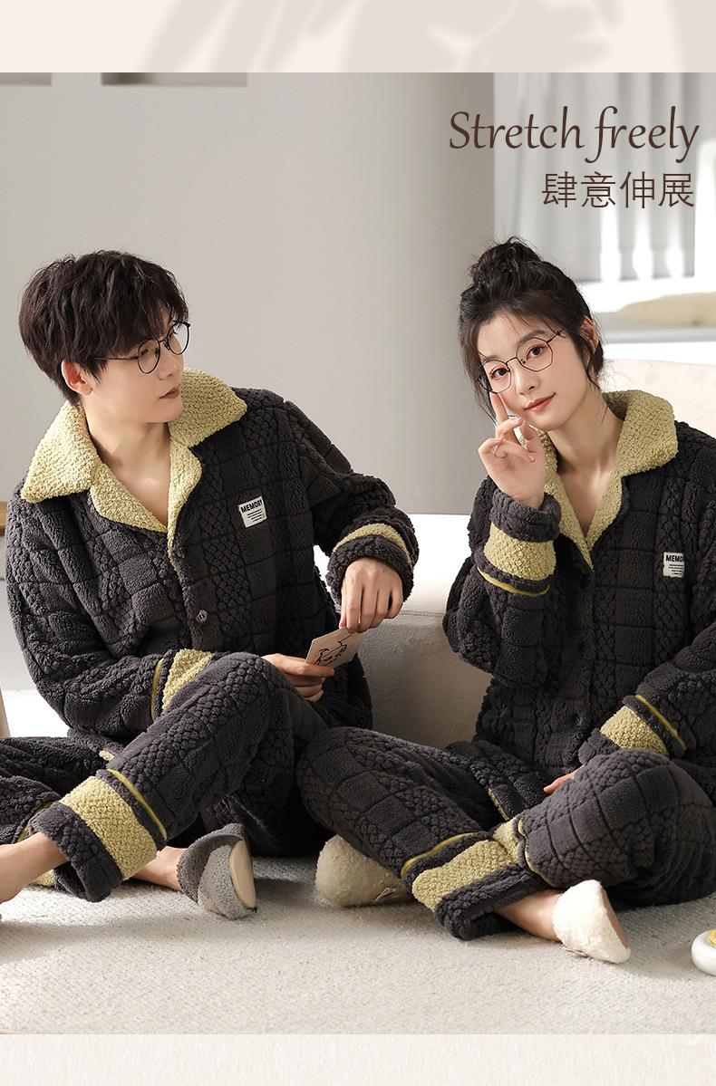 秋冬新款情侣睡衣女士翻领开衫韩版休闲大码男士青少年家居服套装