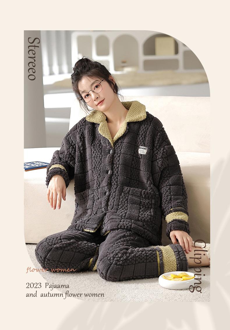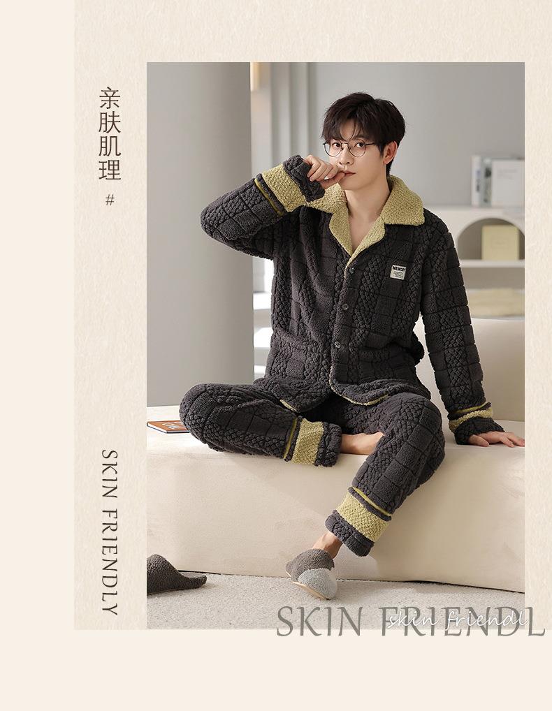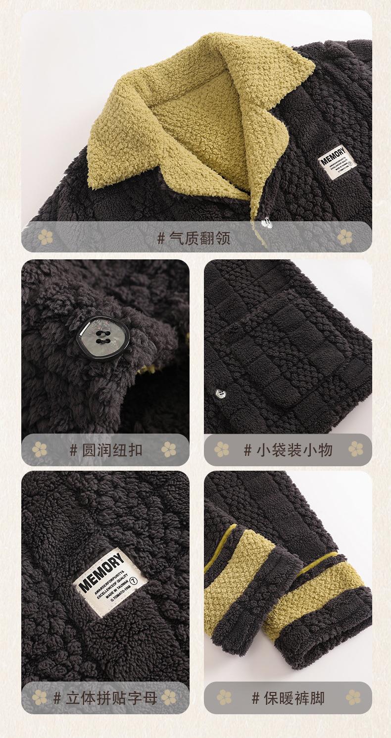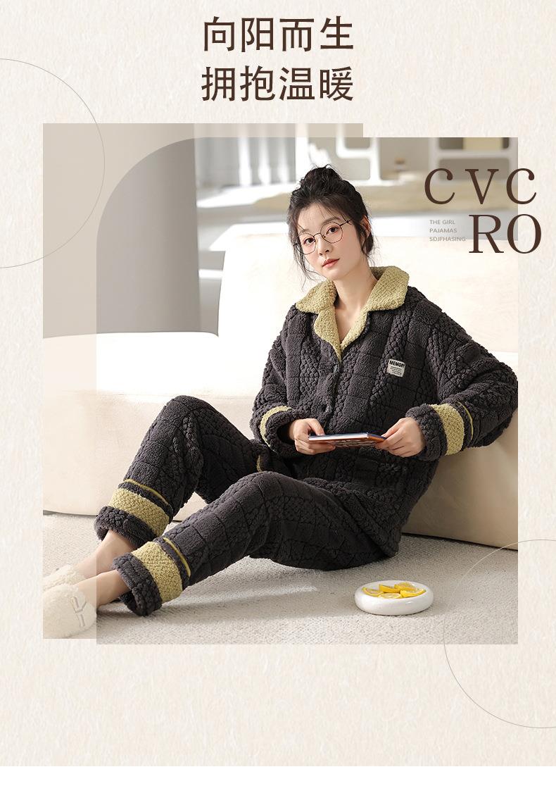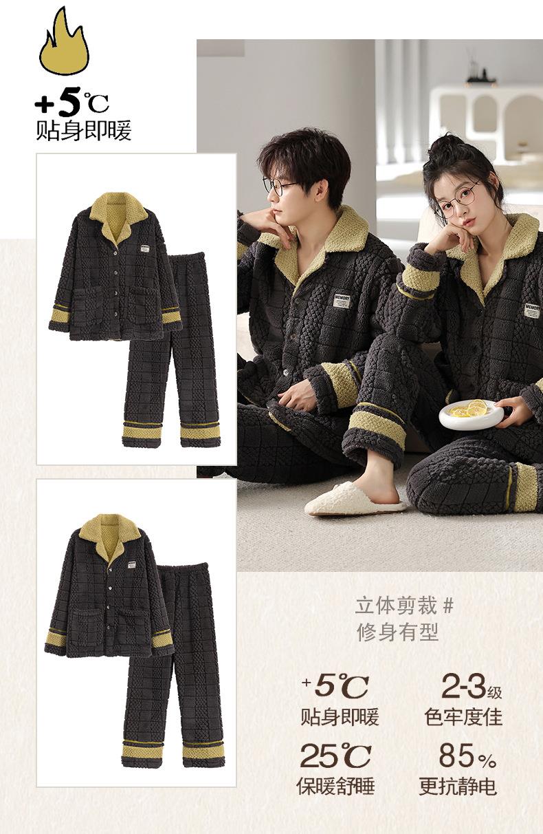 秋冬新款情侣睡衣女士翻领开衫韩版休闲大码男士青少年家居服套装