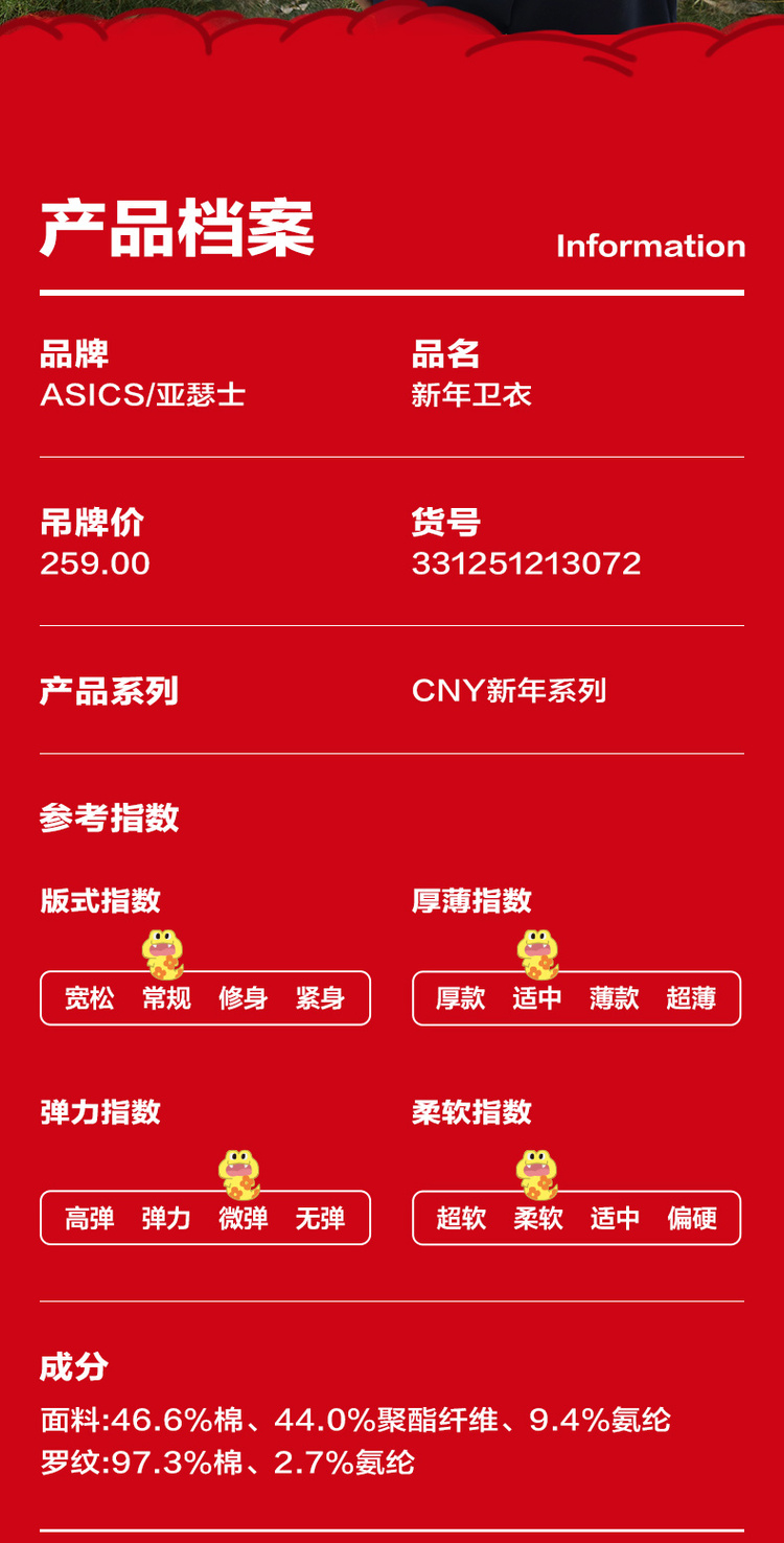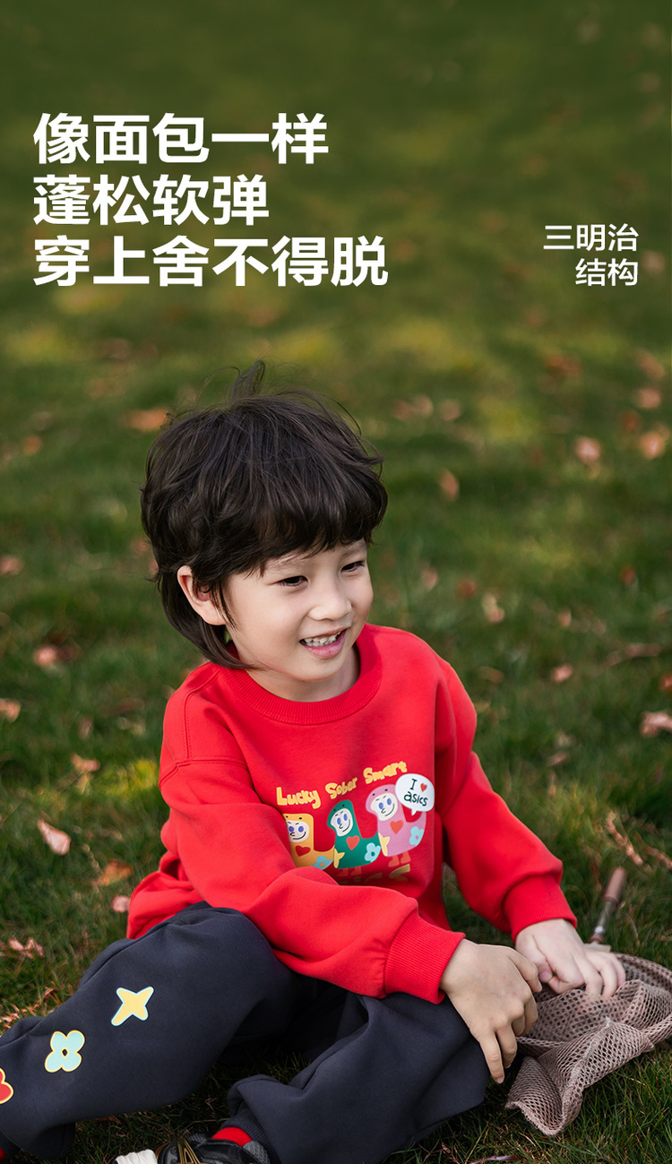 【新年季限定】Asics/亚瑟士童装蛇年主题儿童红色圆领保暖卫衣冬