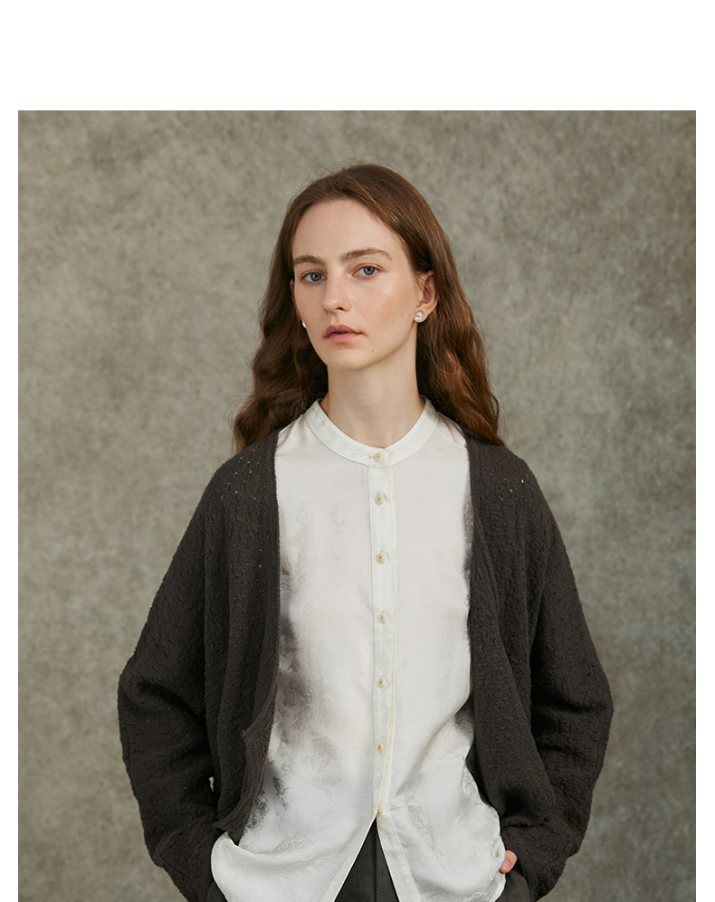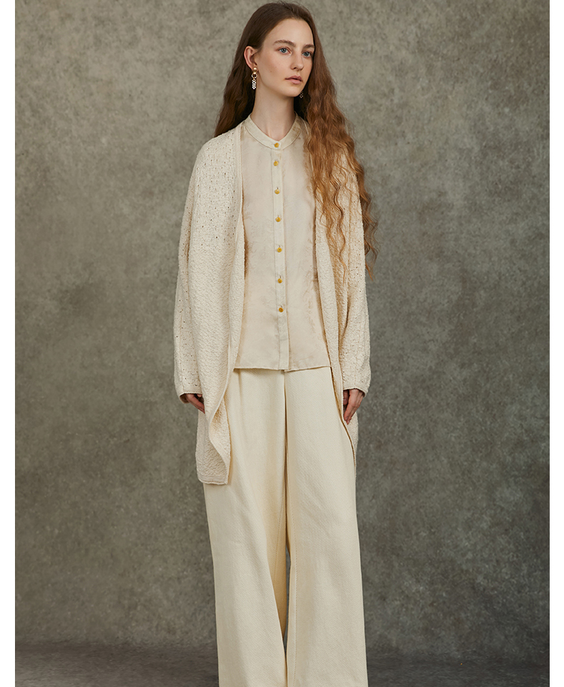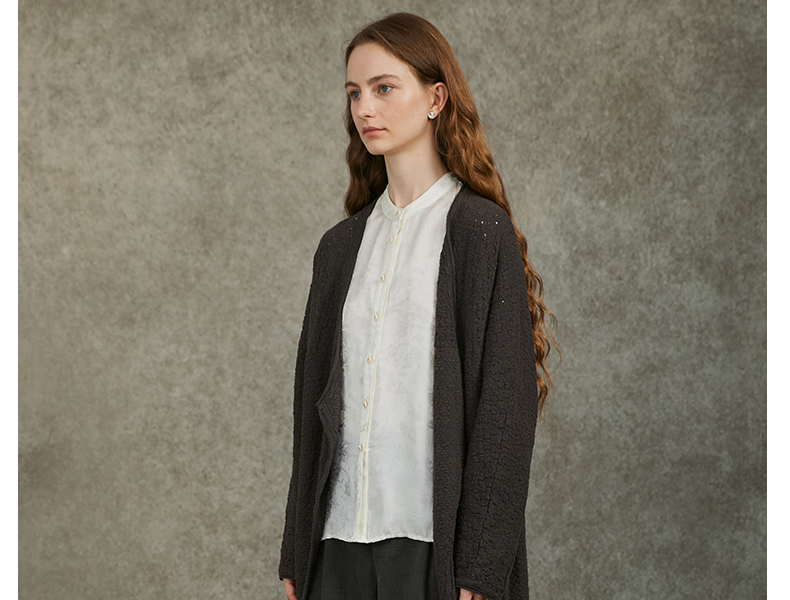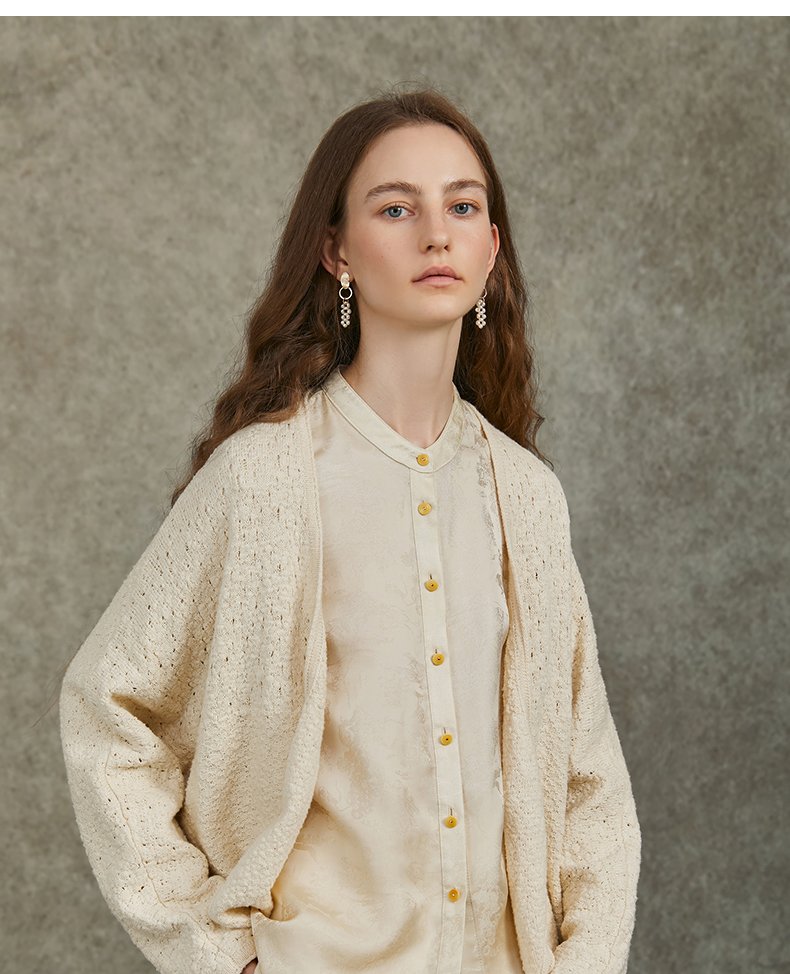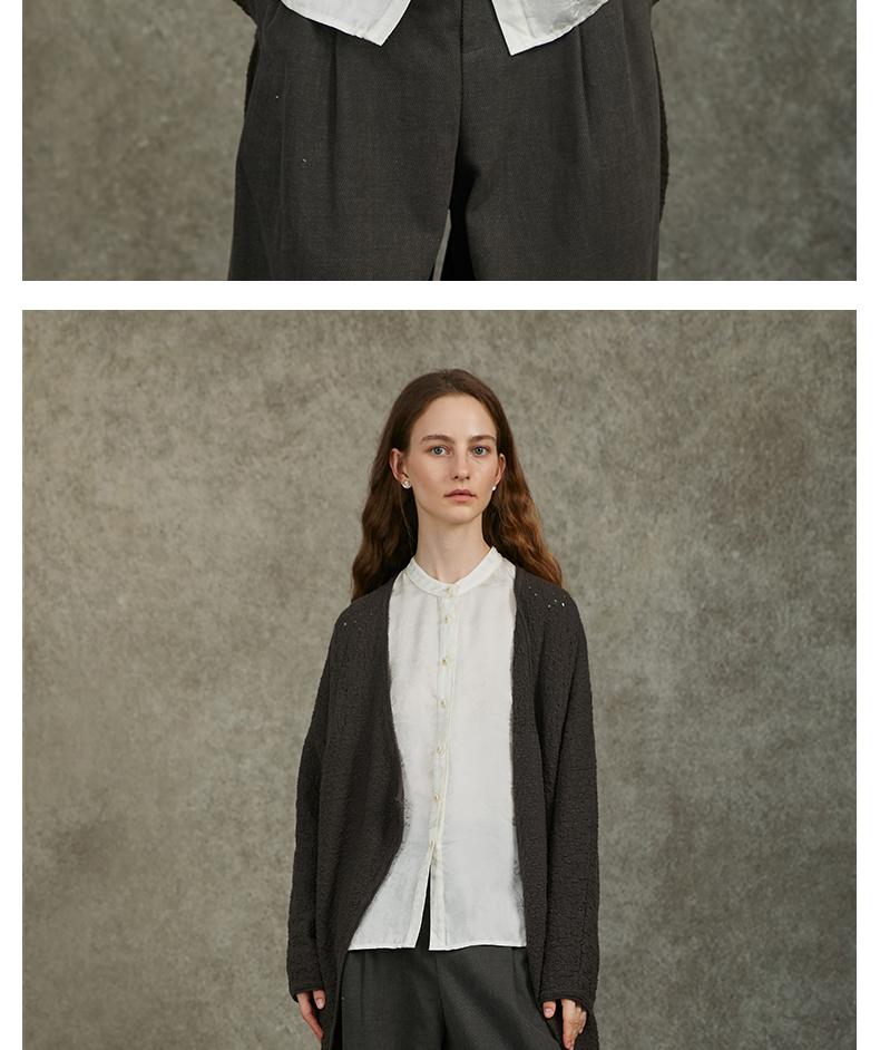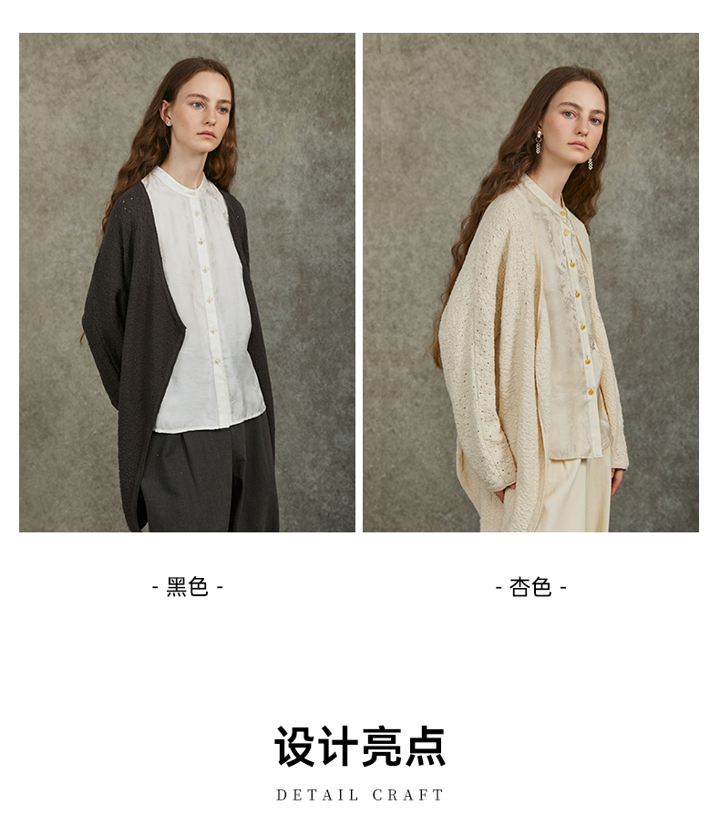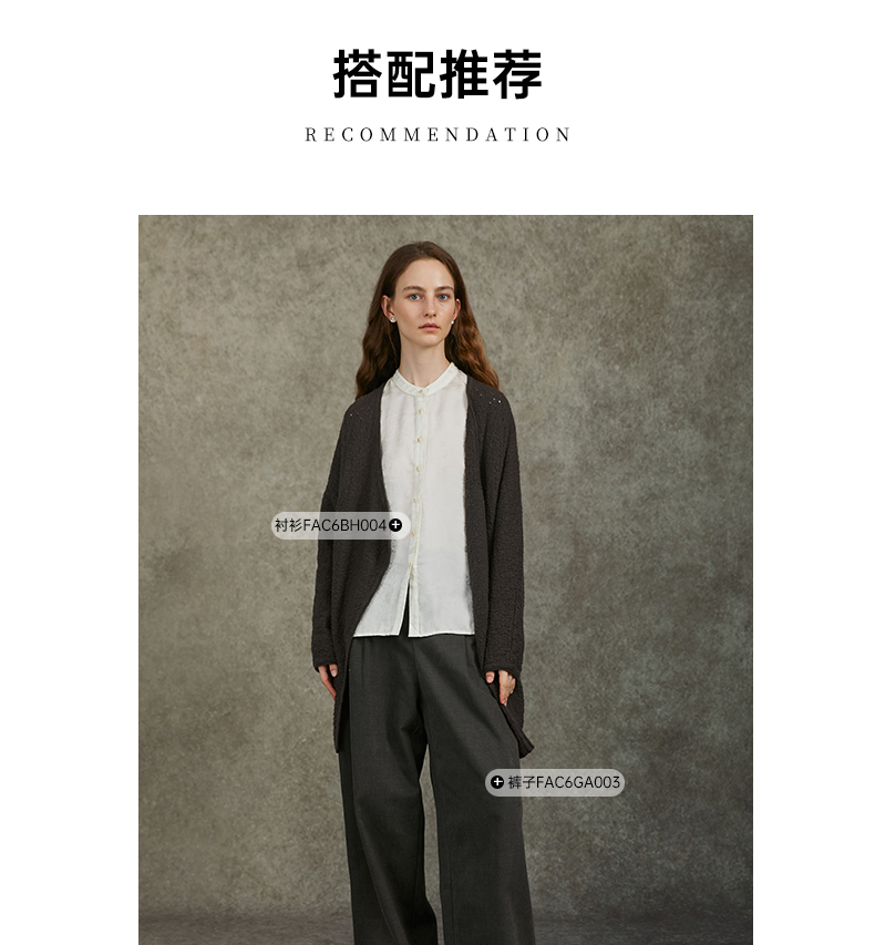 Famecoco范可儿肌理感开身毛衫气质百搭纯棉外搭中长款FAD6DF100