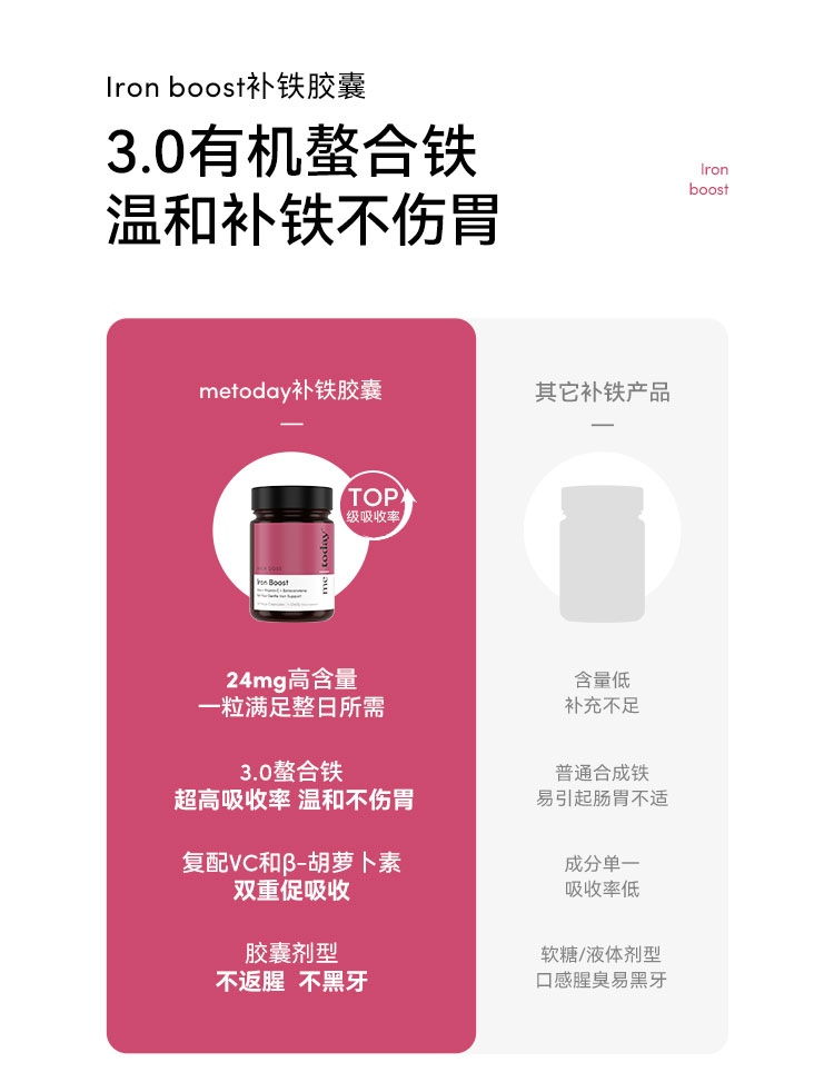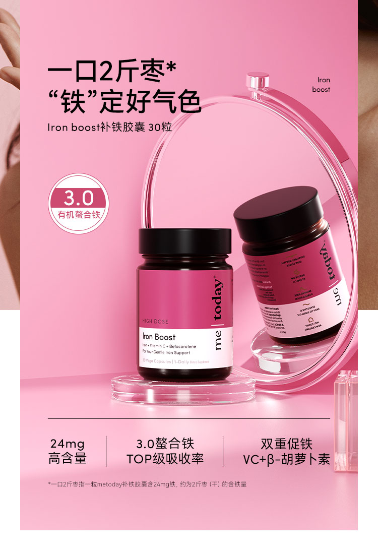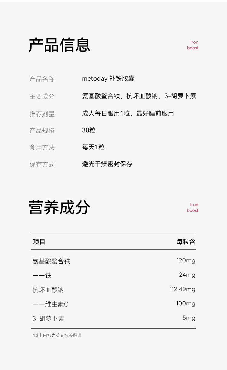 ² 【MT新西兰进口氨基酸螯合铁胶囊】1粒含铁24mg +维生素c100mg+ β-胡萝卜素 30粒/瓶 HM02-CRMM-YYSJ