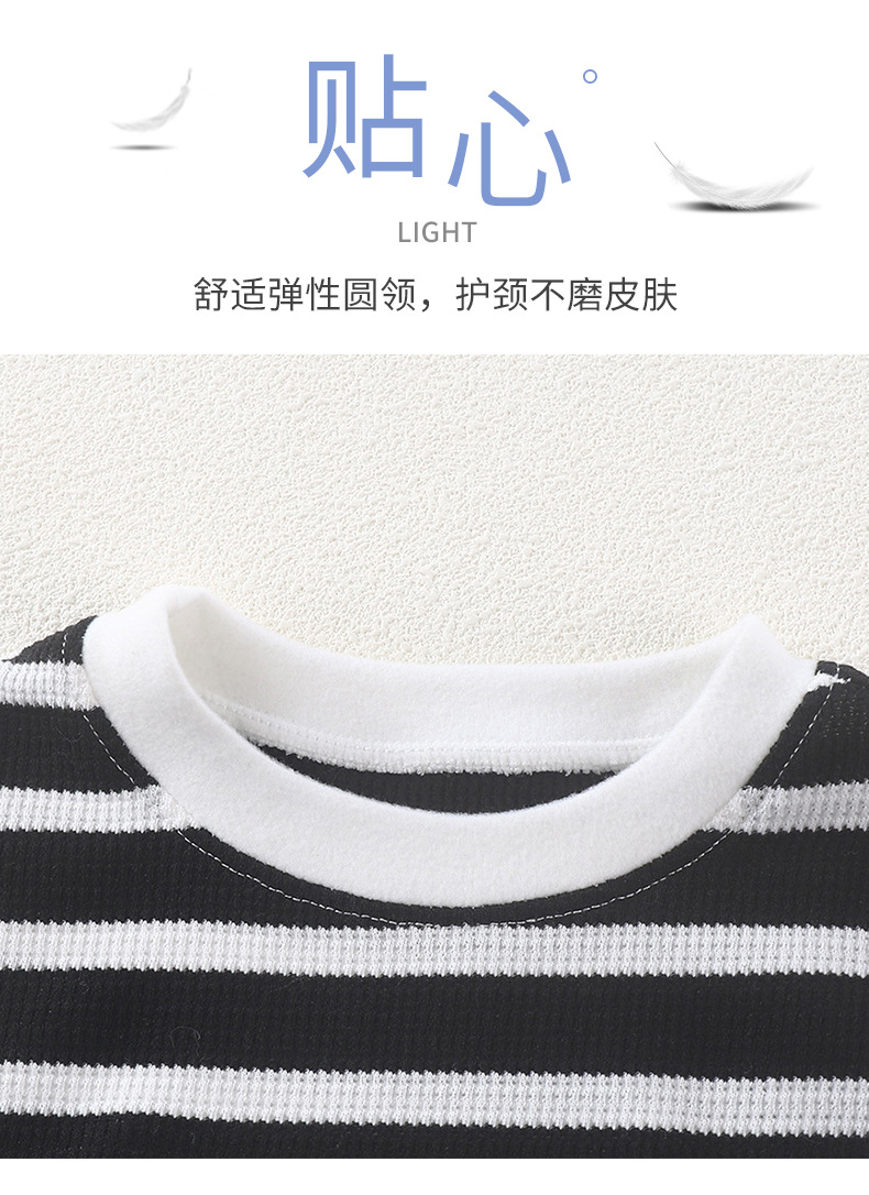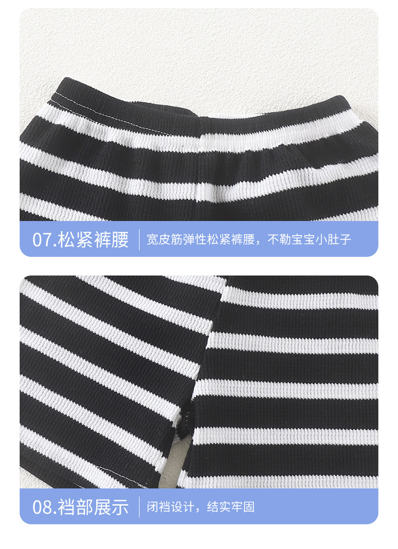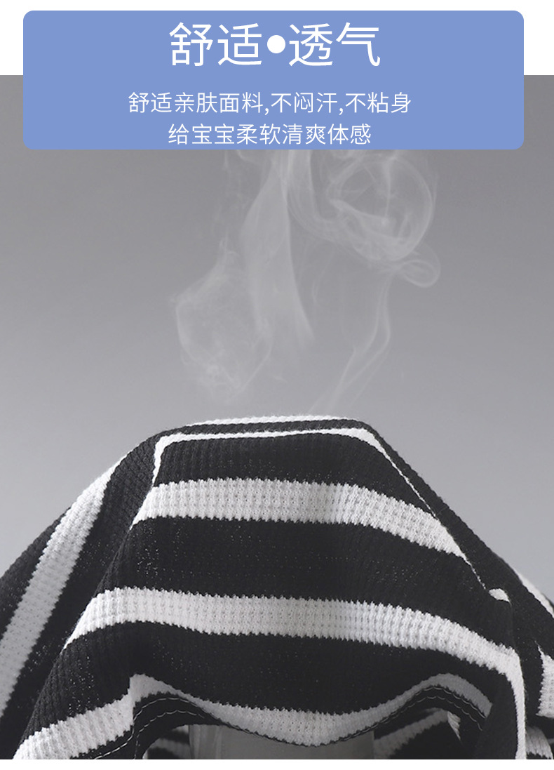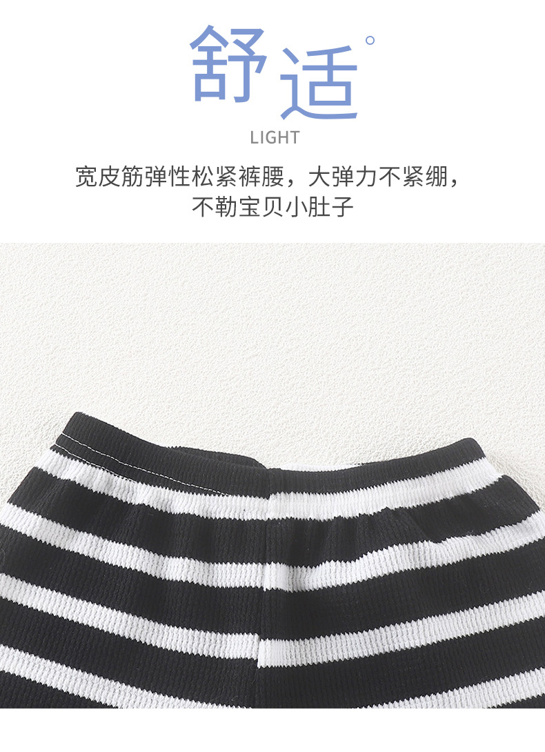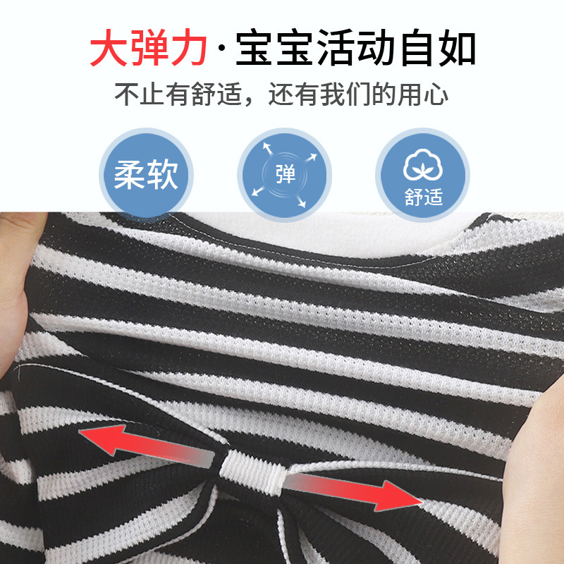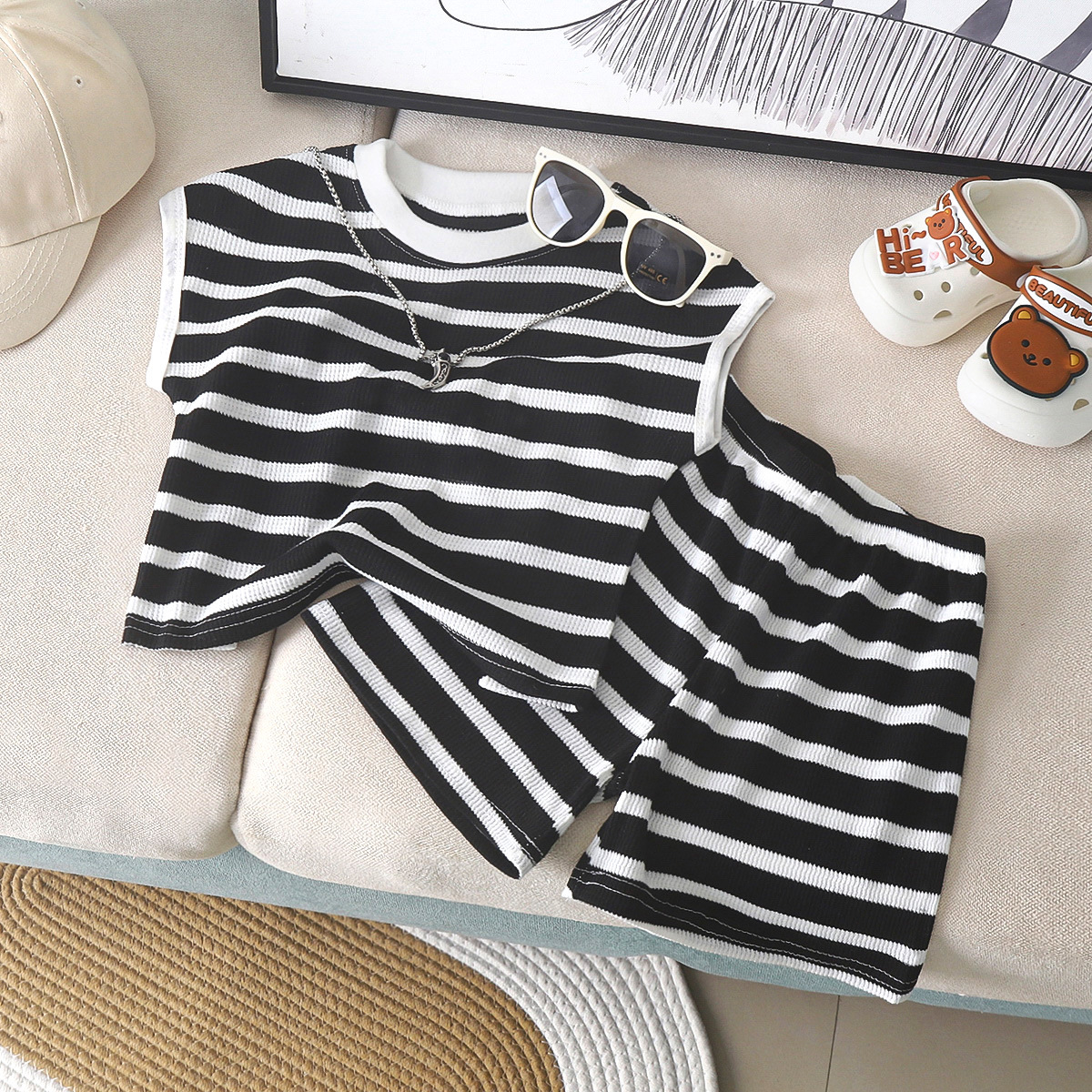 【轻薄透气!抗皱易打理】蝴蝶结短袖套装女童夏款新款洋气条纹无袖背心两件套夏时尚。xb