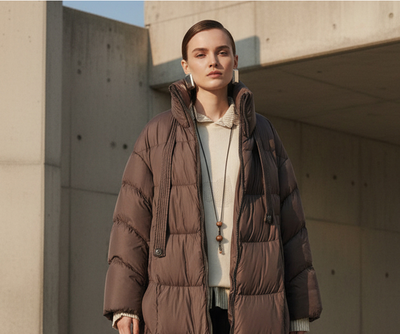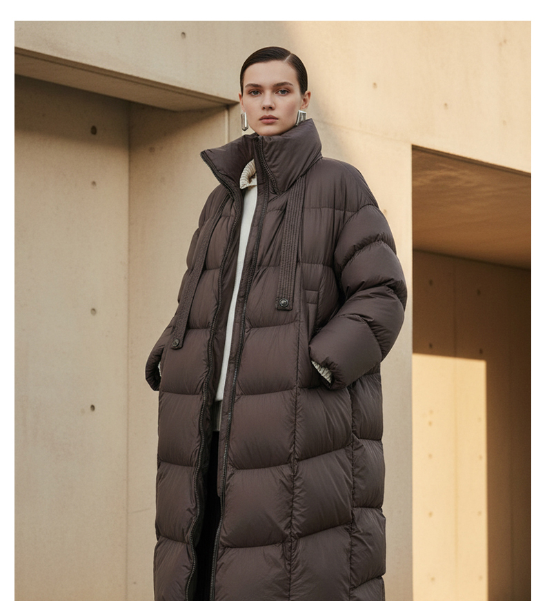 Famecoco范可儿休闲宽松立领长款防风羽绒服高充绒量FAD8AH109