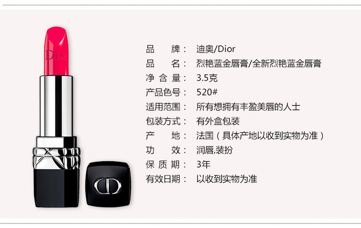 【香港直邮】法国迪奥Dior 烈焰蓝金红色口红 520#